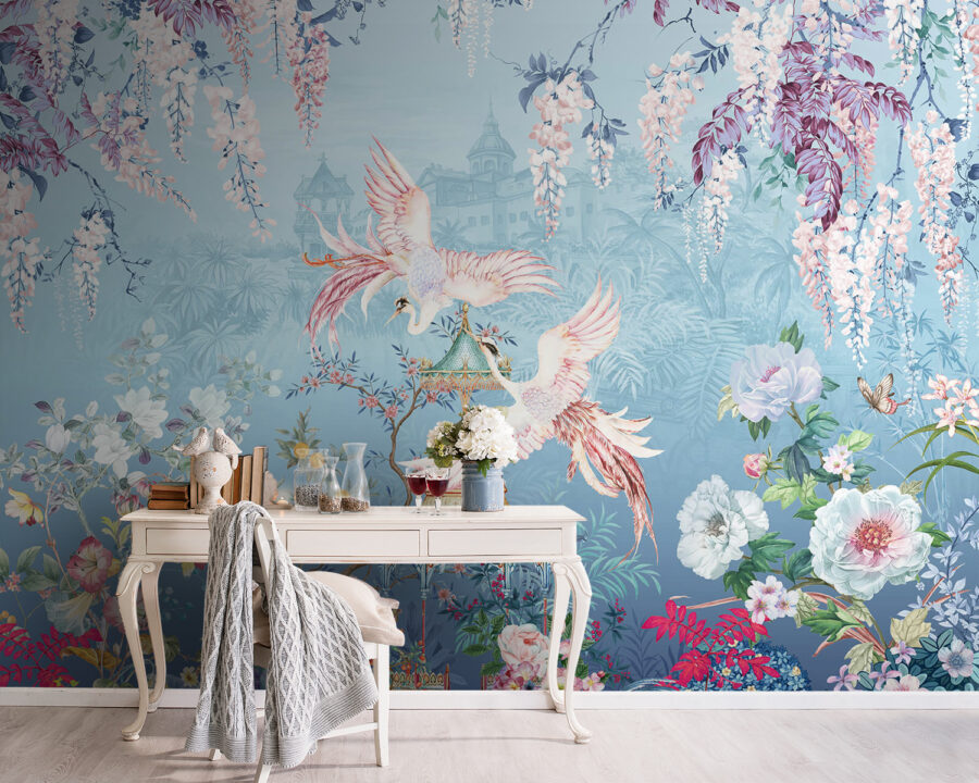 Az “Elegáns madarak virágzó növényvilág közepette” falfestmény segítségével bármelyik szobát nyugodt meneküléssé varázsolhatja. Képzelje el: lágy színekkel kavargó, vibráló virágok, két kecses madár a középpontban, és egy csipetnyi szeszély, amely még a legmerészebb falakat is mosolyra fakasztja. Olyan, mintha egy békés kertet hoznál be a házba, amely tökéletes az álmodozáshoz vagy a magányos teázáshoz. Képzelje el, hogy feldobja a lakóteret, vagy egy hangulatos olvasósarkot varázslatos rejtekhelynek varázsol. Ez a falfestmény nem csupán dekoráció; meghívás arra, hogy megállj, gyönyörködj és elmerülj a természet szépségében, miközben a vendégeket is megdöbbenti. Ki gondolta volna, hogy a falak ennyire hívogatóak lehetnek?