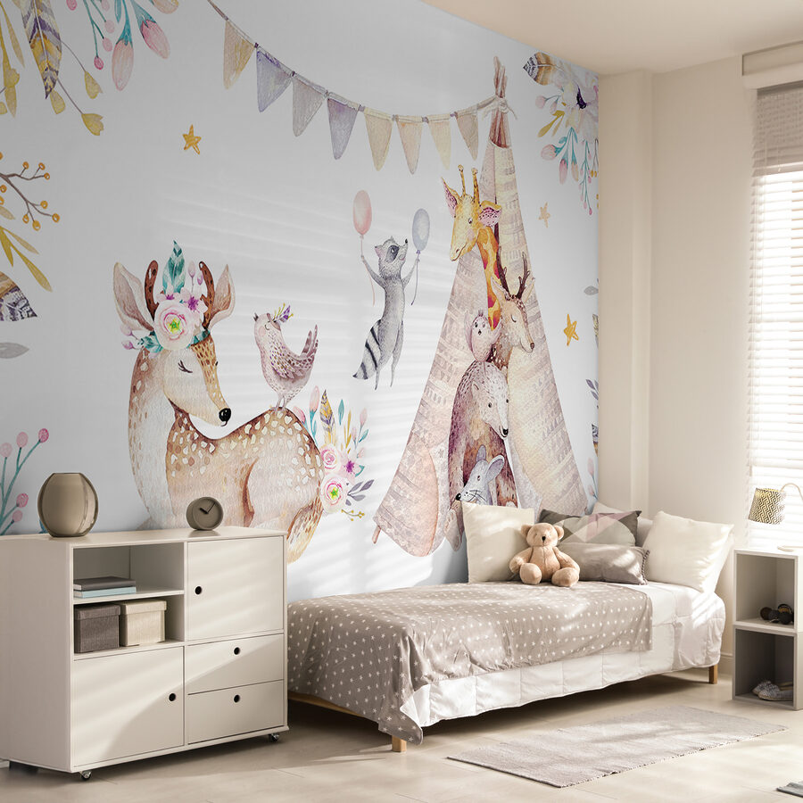 Tökéletes a lánya szobájába vagy bármely gyermeki térbe, olyan, mintha a természet ölelné meg! Képzeld el, ahogy a kisgyermeked minden reggel felébred, és integet a mosómedvének… vagy esti mesét hallgat a zsiráf és a szarvas vigyázó szemei alatt. Olyan, mintha egy darab fantáziaerdő lenne otthon – szuper meghitt és szívmelengető. A szelíd színek zökkenőmentesen illeszkednek a legtöbb dekorációhoz, nyugodt, mégis játékos hangulatot teremtve. Egyszerűen imádnivaló!