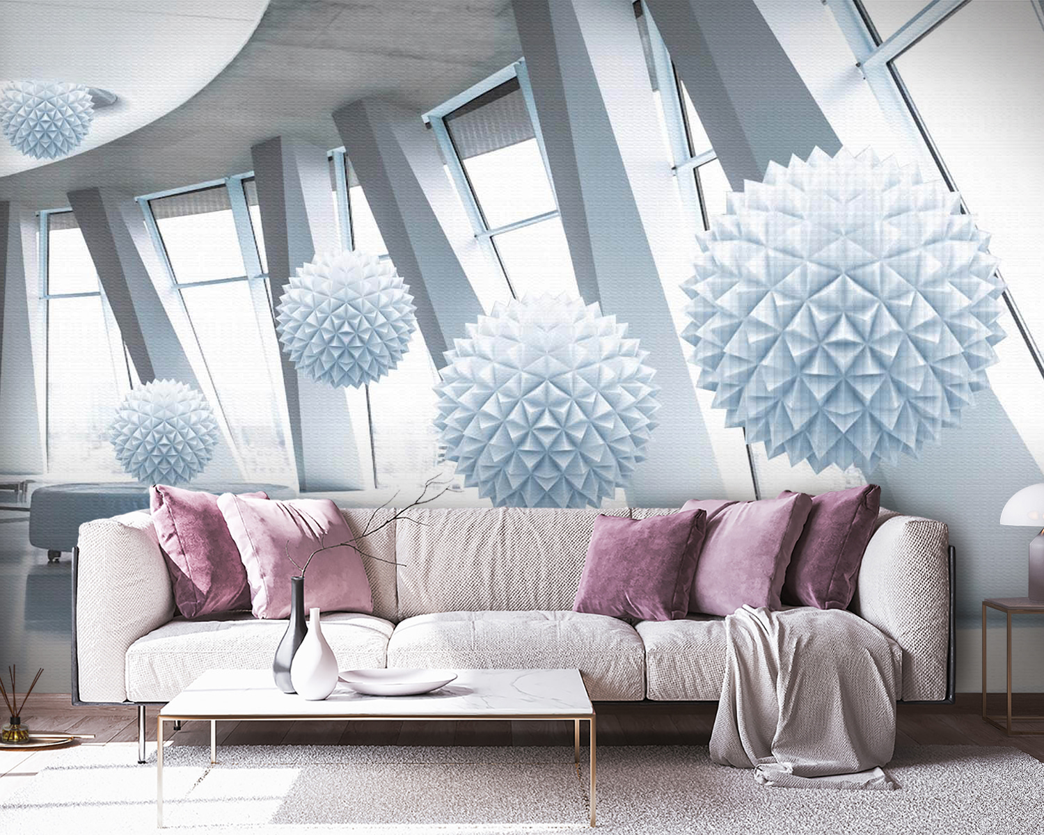 Képzelje el, hogy belép egy szobába, ahol fehér geometrikus csodák lebegnek a levegőben – ez biztosan jó beszélgetésindító téma lesz! Ez a falfestmény, a „White Balls from the Ceiling” (Fehér gömbök a mennyezetről) modern, szeszélyes hangulatot varázsol minden térbe. Mintha valaki egy csomó puha felhőt vett volna, átalakította volna őket, és hagyta volna, hogy a falakon táncoljanak. A 3D-hatás szinte varázslatos, és biztosan lenyűgözi a vendégeket. Tökéletes választás nappalihoz, irodához vagy trendi kávézóhoz, tiszta, elegáns és könnyed, laza hangulatot áraszt. Ráadásul ki ne szeretne egy olyan falat, amely mintha a gravitációval játszik? Adjon falainak egy kis csavart, amely örömet szerez és inspirál egy kis álmodozásra!