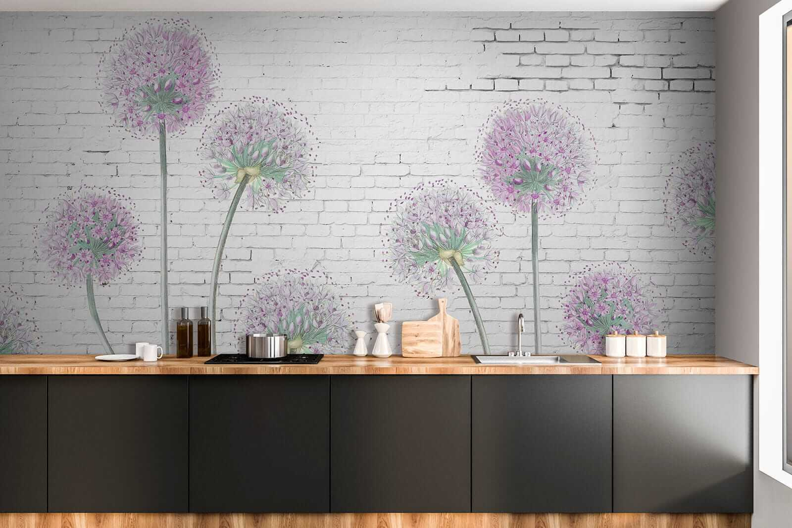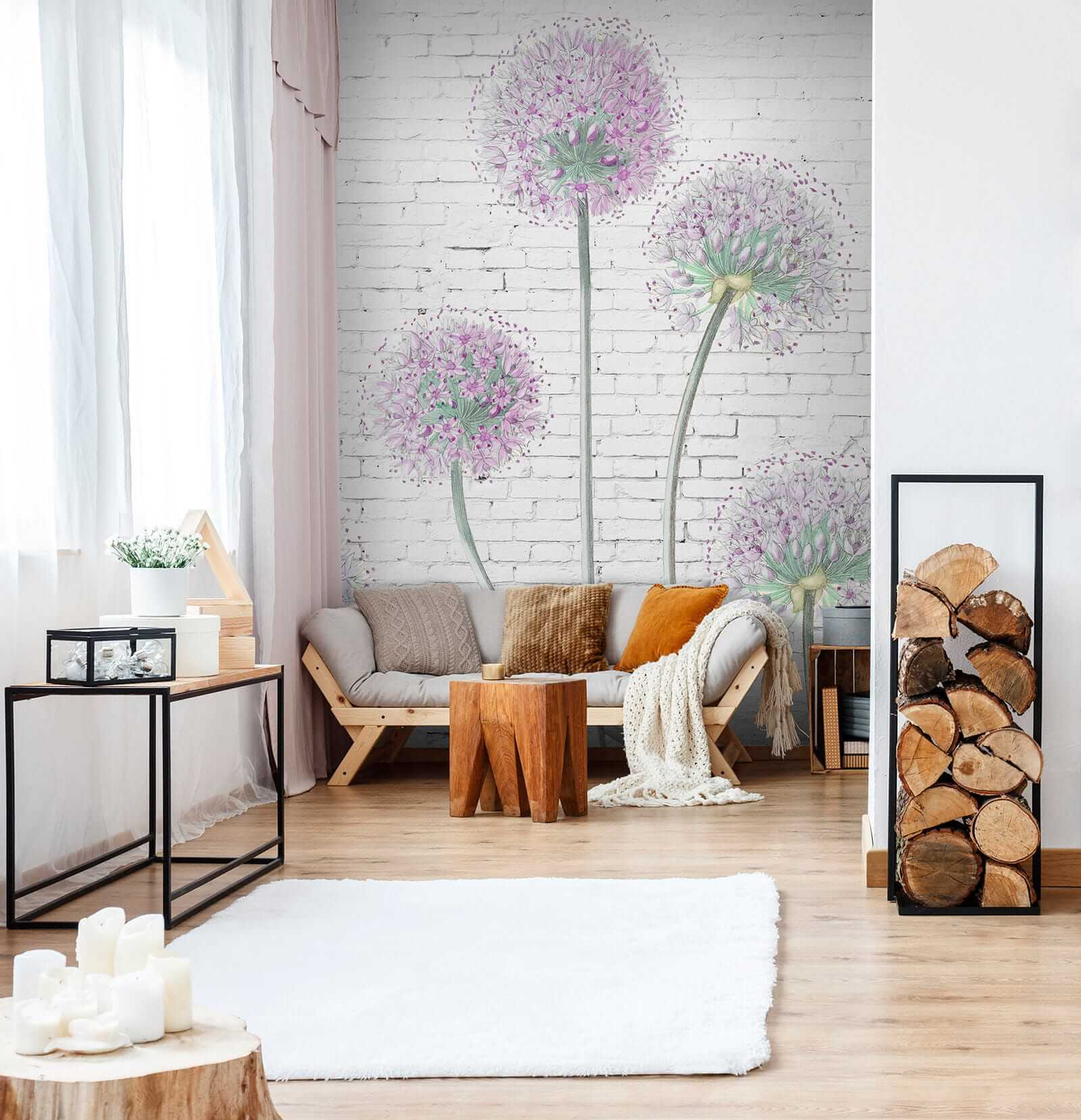 Fotótapéta Virágvirágok fehér téglaháttér előtt Fotótapéta Virágvirágok fehér téglaháttér előtt