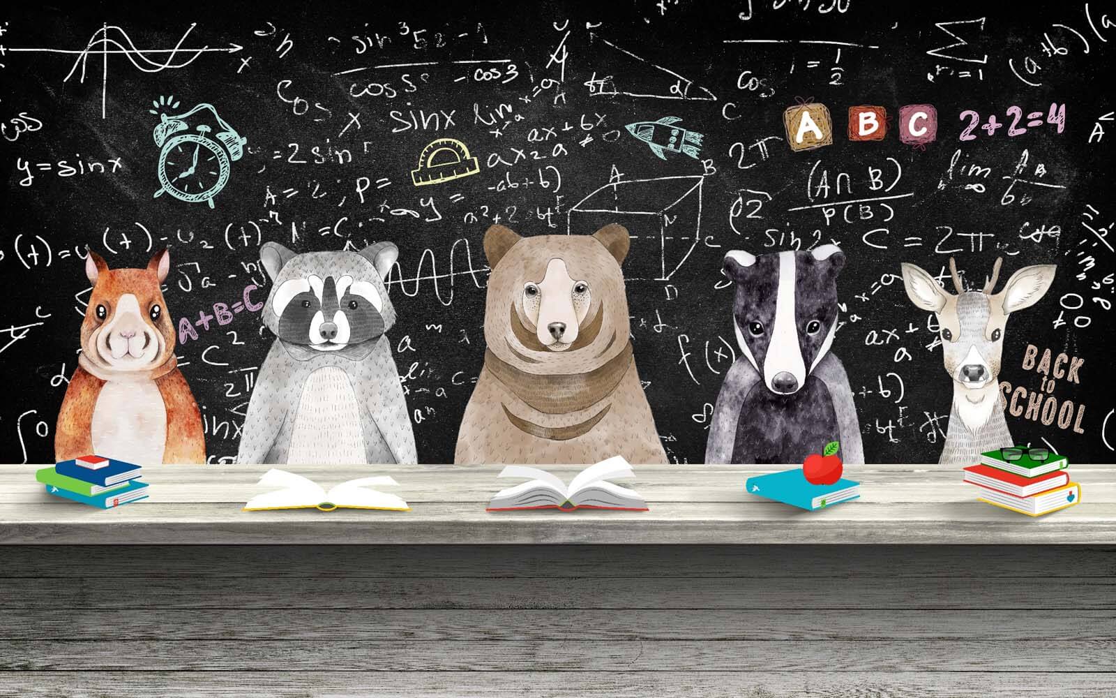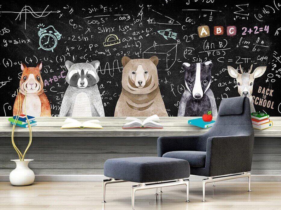 Lépjen be egy szeszélyes osztályterembe, ahol a természet és a tanulás találkozik! Ez a bájos falfestmény, amelyen imádnivaló állat diákok – mosómedvék, medvék és egy bölcs öreg szarvas – láthatók, egy játékos egyenletekkel és betűkkel teli táblával a háttérben. Mintha minden nap visszatérne az iskolakezdés vidám hangulata, tökéletes egy gyerekszobába vagy egy kreatív munkaterületre. Képzelje el a gyerekek nevetését, amikor szőrös barátaik mellett próbálnak tanulni. A lágy színek és a vidám téma melegséget áraszt, így otthon érezheti magát. Ráadásul ki ne szeretné, ha egy medve figyelné a házi feladatát? Ez a falikép egyszerre oktató jellegű és szuper aranyos, és minden falra vidámságot varázsol!