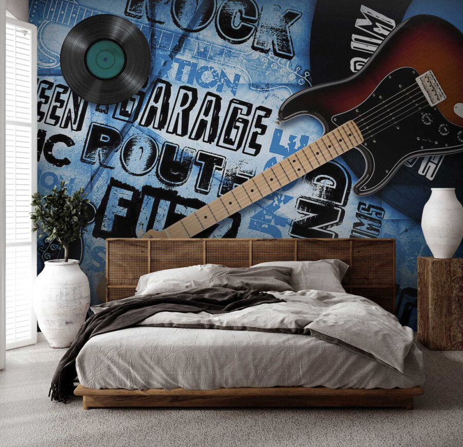 Egy kis rock ‘n’ rollra vágysz a térben? Ez a “Rock and Roll Dreams Unleashed” falfestmény tökéletes dzsem – olyan, mintha egy menő, vintage lemezboltba lépnél be. A vibráló kék színek, az éles betűtípusok és az ikonikus gitárok attitűdöt és lázadást sugároznak. Tökéletes a koncertálmaik küszöbén álló tiniknek vagy a csillagokkal a szemükben lévő fiataloknak. Képzeld el, hogy minden nap erre az energiára ébredsz – olyan, mint egy gitárriff a falakon! Remekül alkalmas arra, hogy komoly hangulatot kölcsönözzön a hálószobának vagy a zenekedvelők dolgozószobájának. Ráadásul egyszerűen fantasztikusan néz ki!