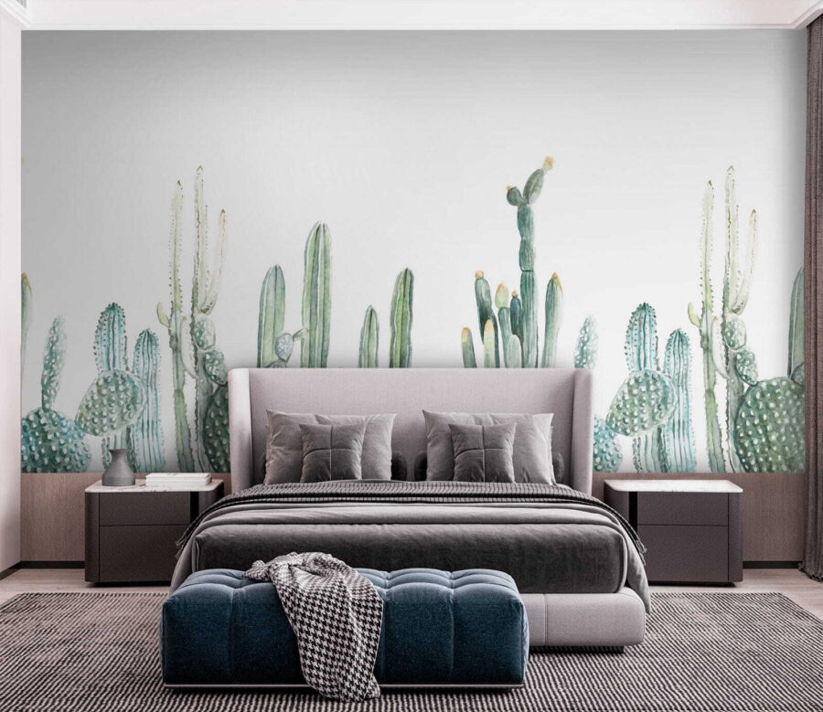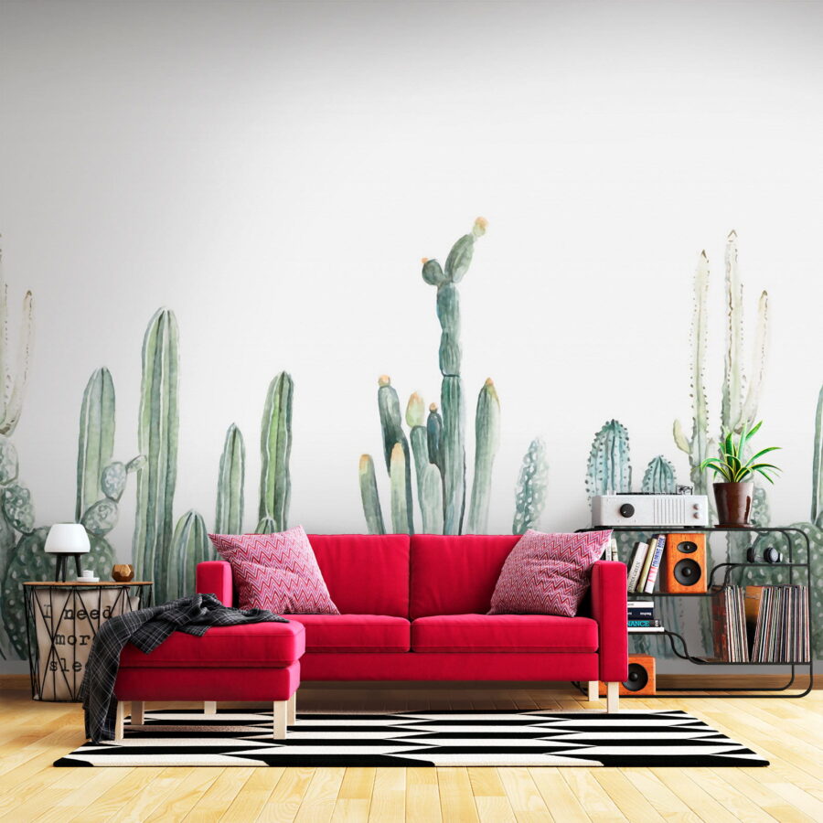 Alakítson át bármilyen szobát sivatagi oázissá ezzel a bájos, vízfestményes kaktuszokkal díszített falfestménnyel. Képzelje el: besétál a helyiségébe, és hirtelen olyan, mintha egy nyugodt kertben sétálna, mínusz a naptej szükségessége. A lágy zöldek és a játékos formák nyugalmat árasztanak, így tökéletes egy hangulatos olvasósarokba vagy egy élénk nappaliba. Majdnem olyan, mintha lenne egy házikaktuszod – a szúrós gondozási rutin nélkül. Ez a falfestmény melegséget és nyugalmat sugároz, és mindenkit, aki belép, pihenésre és kikapcsolódásra invitál. Szóval hajrá, engedd, hogy a falak életet leheljenek!