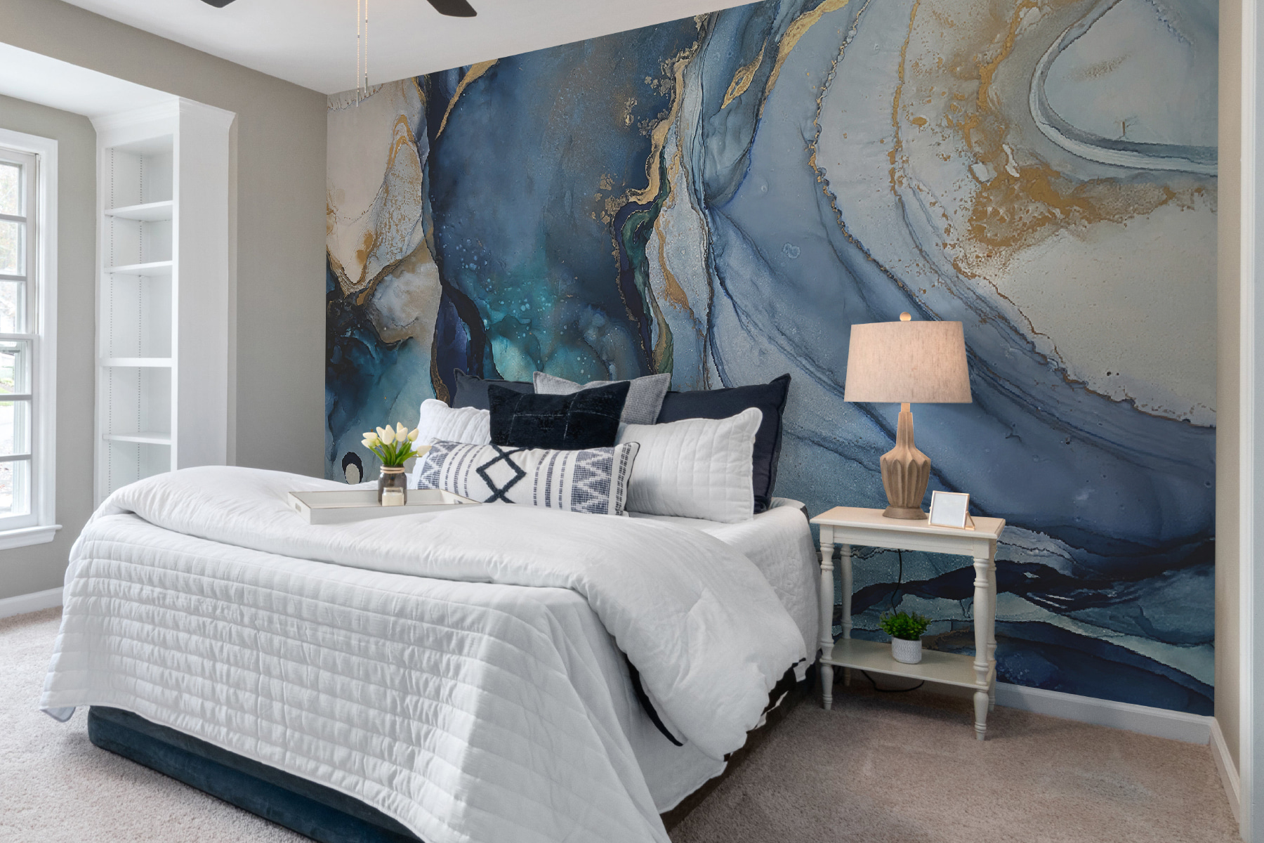 Merüljön el a nyugalom óceánjában ezzel a lenyűgöző falfestménnyel, ahol a kavargó kék minták úgy táncolnak együtt, mint a hullámok a lágy szellőben. Ez nem csak egy tapéta; ez egy mini vakáció a falakon, amely egy egyszerű szobát nyugodt meneküléssé változtat. Képzelje el, ahogy a kávéját kortyolgatja, miközben a kékek kavarognak körülötte, és a helyiséget egy tengerparti búvóhelynek érzi. Tökéletes egy hangulatos olvasósarokba vagy egy inspiráló munkaterületre, ez a dizájn személyiséget kölcsönöz anélkül, hogy feltűnést keltene. Amikor a vendégek belépnek, valószínűleg azt fogják hinni, hogy a családban van egy belsőépítész – szóval rajta, élvezze a hullámokat!