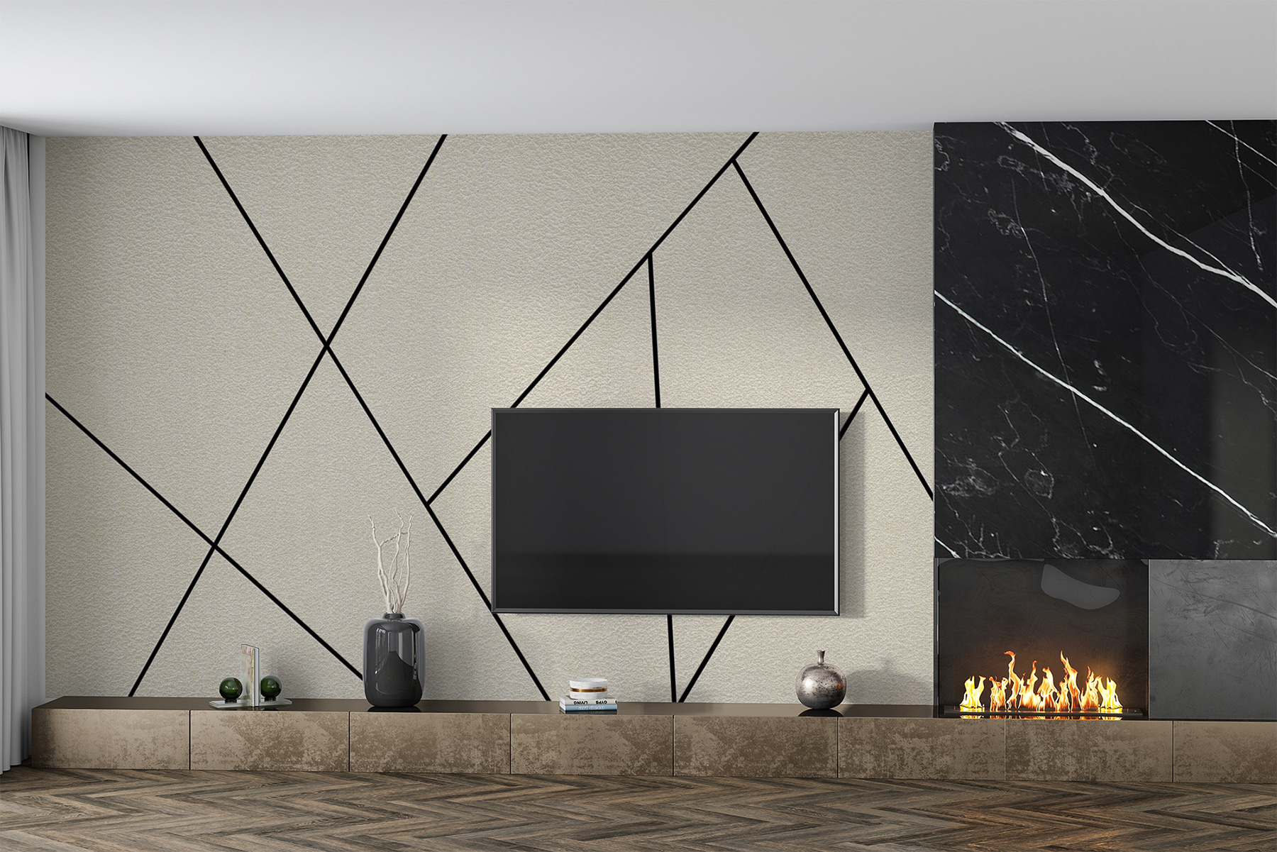 Képzelje el, hogy egy hosszú nap után hazaérkezik, és ez a lenyűgöző falfestmény fogadja – absztrakt minták, egymást metsző vonalak, amelyek csak úgy kiáltanak modern kifinomultságot. Olyan, mintha egy kortárs művészeti alkotás lenne a falán, a magas árcédula és a galériás felhajtás nélkül. Ó, és beszéljünk a beszélgetésindítóról!