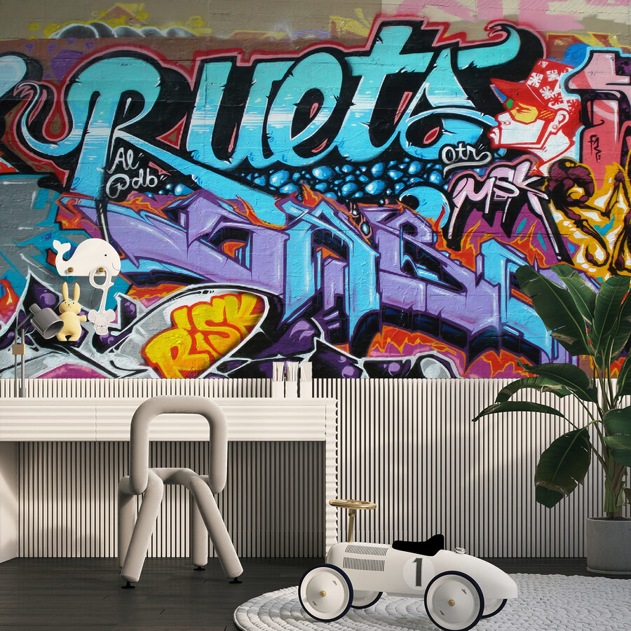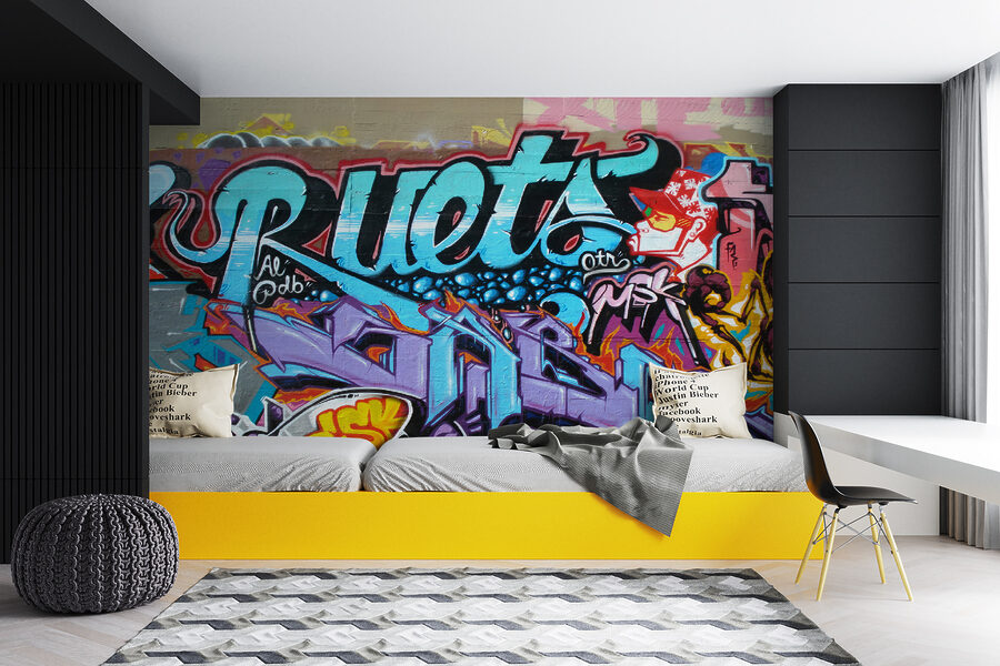 Tökéletes a tizenévesek vagy fiatal felnőttek számára, akik egy kis városi hangulatot szeretnének a helyiségükbe, ez a falfestmény személyiséget sugároz – anélkül, hogy egy szót is szólna. Olyan élénk színekkel és bonyolult mintákkal rendelkezik, amelyekkel úgy érezheted, mintha egy nyüzsgő város művészi mellékutcájában sétálnál.