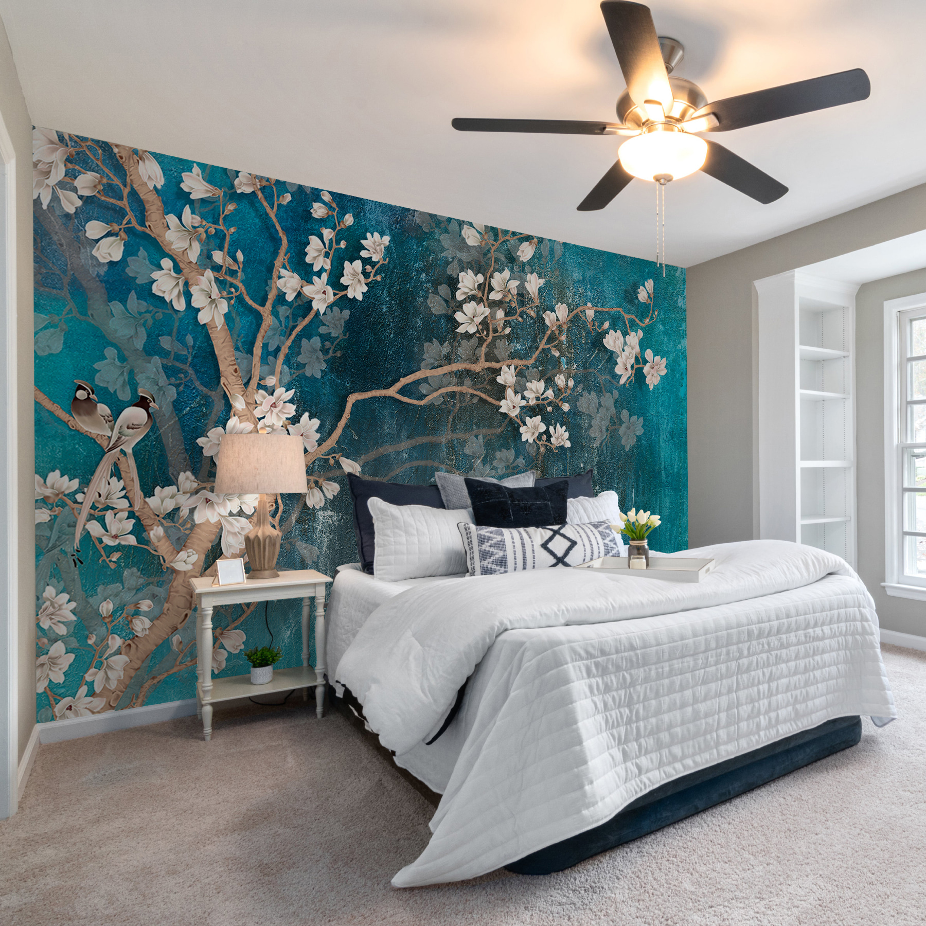 Álmodtál már arról, hogy a természet szépségét beviszed a lakásodba? Ez a “Fehér virág kék alapon” falfestmény olyan, mint egy kis friss levegő a terében! Képzelje el, ahogyan finom fehér virágok hullámzanak egy álomszép kék háttéren, ahol bájos madarak ülnek kecsesen. Olyan, mintha saját titkos kerted lenne, mínusz a locsolás!