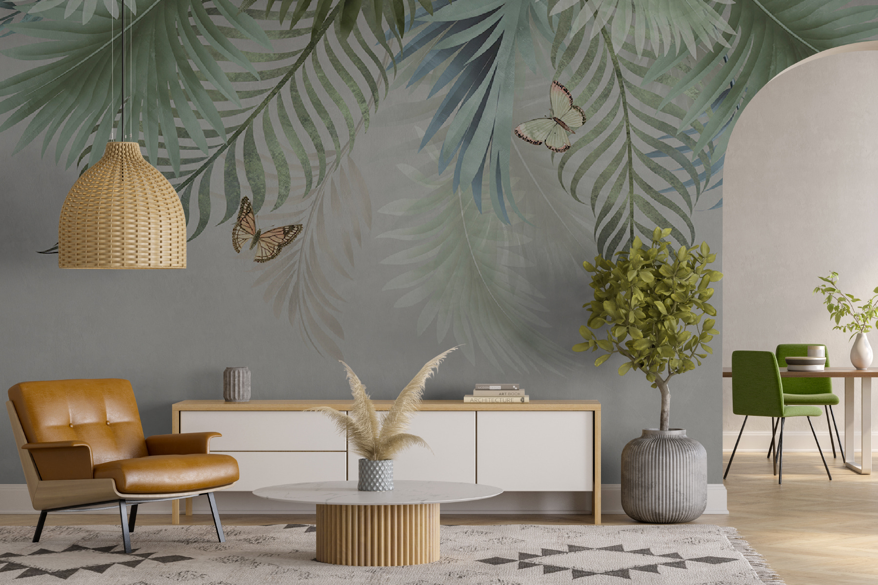 Bármilyen teret alakítson át nyugodt meneküléssé ezzel a varázslatos falfestménnyel, ahol pillangók játszanak bújócskát buja leveles ágak között. Képzelje el, hogy egy békés dzsungelbe lép, és érezze, ahogy a nyugalom átjárja, miközben a falakon vibráló zöldek táncolnak. Ez a falfestmény nem csak dekoráció; ez egy mindennapi emlékeztető, hogy megálljon és értékelje a természet szépségét – mindezt a nappali kényelméből. Tökéletes egy hangulatos zugba vagy egy élénk közösségi térbe, mindenkit arra invitál, hogy vegyen egy lélegzetet és mosolyogjon. Ki ne érezné az öröm szikráját a repkedő barátoktól körülvéve? Merüljön el a saját paradicsomi szeletébe!
