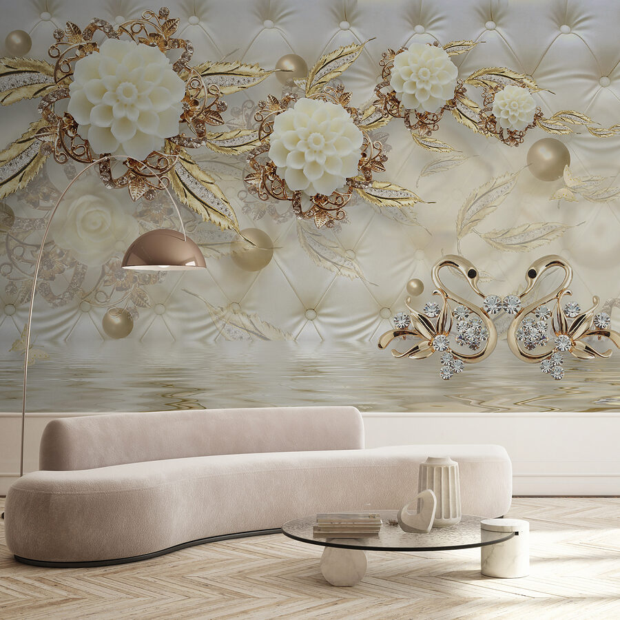 Alakítson át bármilyen helyiséget ezzel a lenyűgöző falfestménnyel, amelyen elegáns hattyúk láthatók, virágos dekorációval kecsesen keretezve. Olyan, mintha egy nyugodt tóparti jelenetet hívna meg otthonába. Képzelje el, hogy egy hosszú nap után hazaérkezik, és ezek a bájos madarak fogadják, körülvéve finom virágokkal – teljes hangulatváltás! A lágy színek nyugtató légkört teremtenek, amely tökéletes egy hangulatos olvasósarokba vagy egy elegáns lakótérbe. A barátok már a belépéstől felfrissülve fogják érezni magukat, és minden egyes pillantás erre a falfestményre arra késztet majd, hogy értékelje a szépséget a mindennapi pillanatokban. Ez egy olyan dekoráció, amely valóban eleganciát súg anélkül, hogy túlságosan próbálkozna. Tökéletes mindenkinek, aki szereti a természet báját!