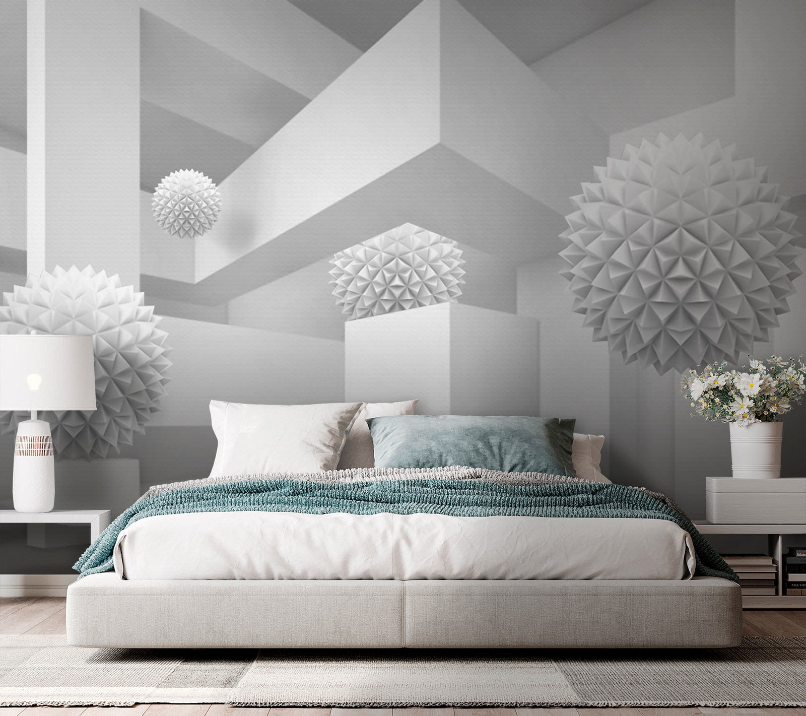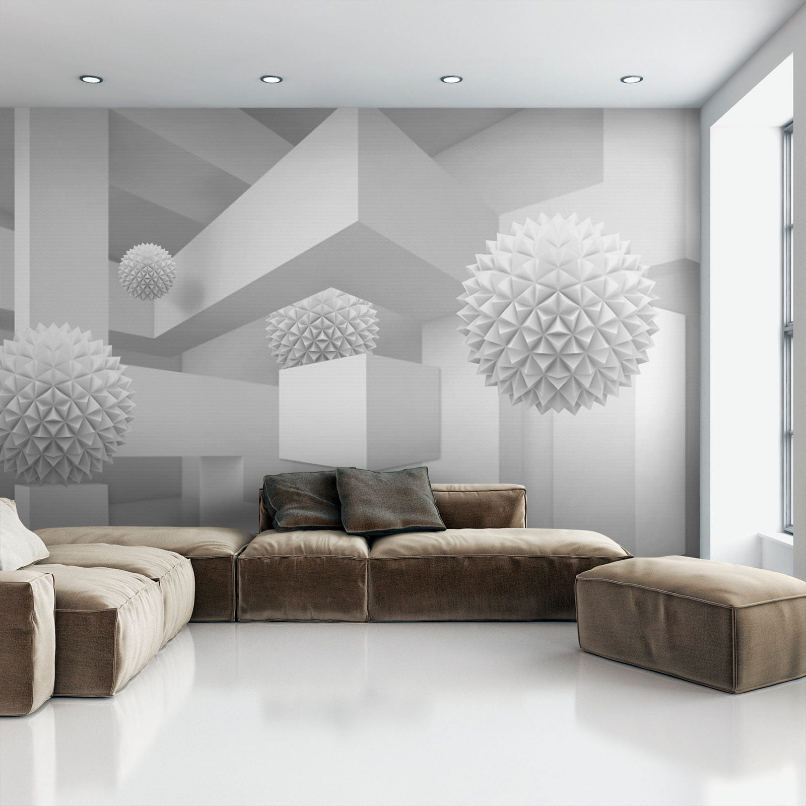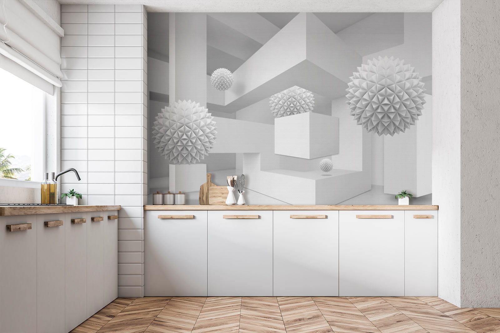 Képzelje el, hogy egy nyugodt, álmodozó térbe lép, ahol a fehér a show sztárja. Ez a falfestmény, amely egy tiszta, világos szobát ábrázol, tele furcsa, háromdimenziós gömbökkel, olyan, mint egy szeszélyes kaland az egyszerűségben. A játékos formák a háttérben felbukkannak, kíváncsi pillantásokra és szelíd mosolyokra invitálva. Tökéletes egy modern nappaliba vagy kreatív sarokba, bármelyik falat beszélgetésindítóvá varázsolja. Képzelje el, ahogy vendégül látja barátait, akiknek a szemei zavartan felcsillannak, és a nevetés pezseg, ahogy megpróbálják kitalálni a lebegő formák mögötti történetet. Ez nem csak egy falfestmény; ez egy élmény, ami csak arra vár, hogy megtörténjen.