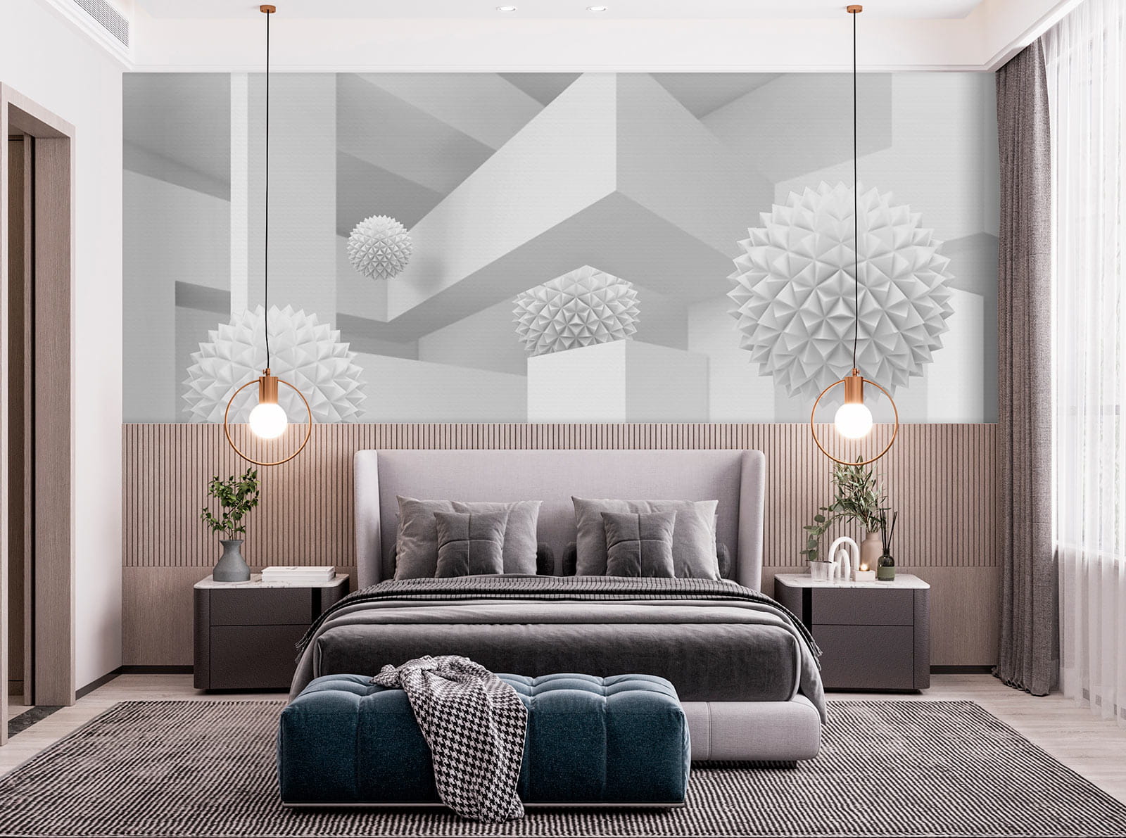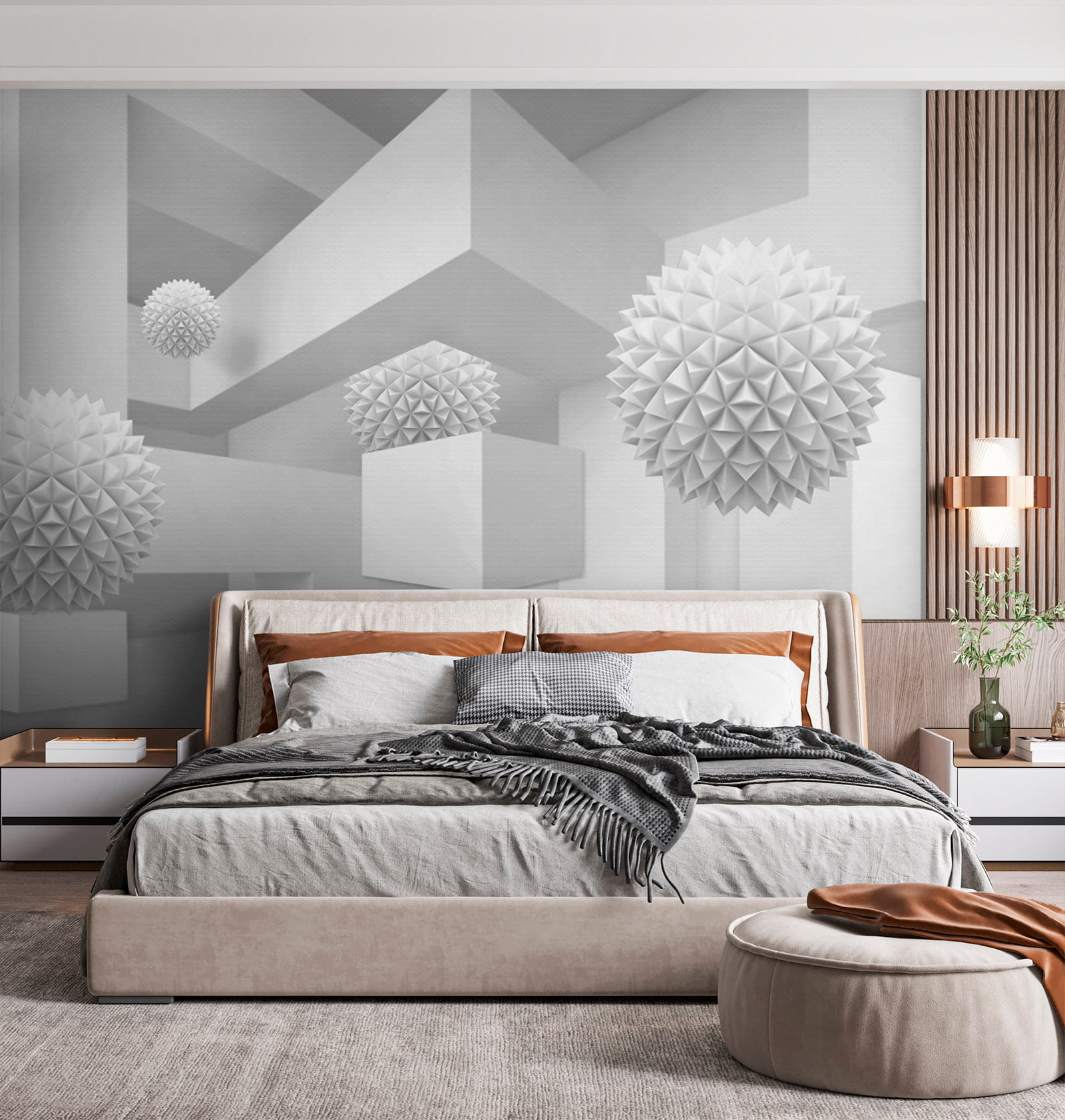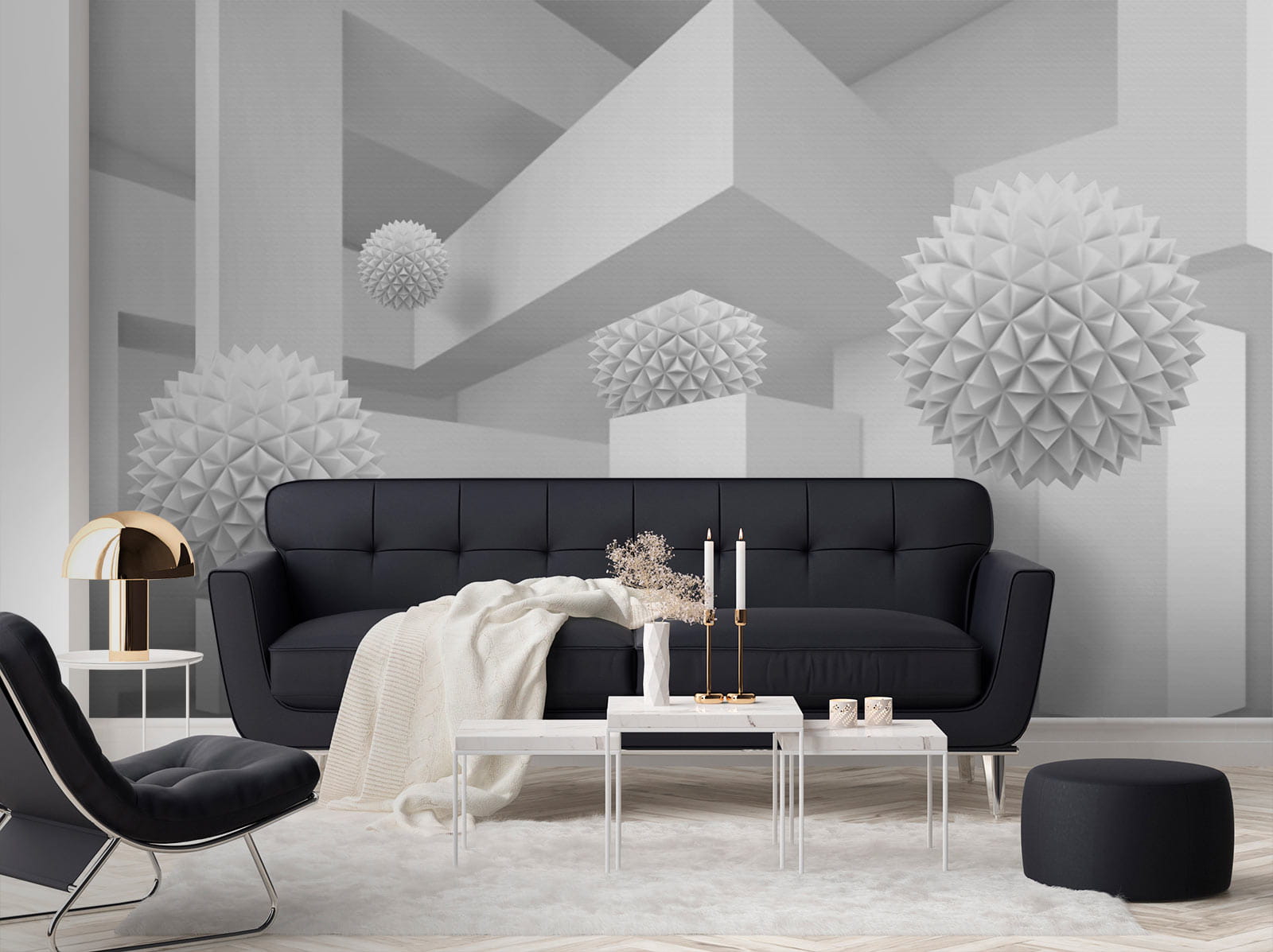 Képzelje el, hogy egy nyugodt, álmodozó térbe lép, ahol a fehér a show sztárja. Ez a falfestmény, amely egy tiszta, világos szobát ábrázol, tele furcsa, háromdimenziós gömbökkel, olyan, mint egy szeszélyes kaland az egyszerűségben. A játékos formák a háttérben felbukkannak, kíváncsi pillantásokra és szelíd mosolyokra invitálva. Tökéletes egy modern nappaliba vagy kreatív sarokba, bármelyik falat beszélgetésindítóvá varázsolja. Képzelje el, ahogy vendégül látja barátait, akiknek a szemei zavartan felcsillannak, és a nevetés pezseg, ahogy megpróbálják kitalálni a lebegő formák mögötti történetet. Ez nem csak egy falfestmény; ez egy élmény, ami csak arra vár, hogy megtörténjen.