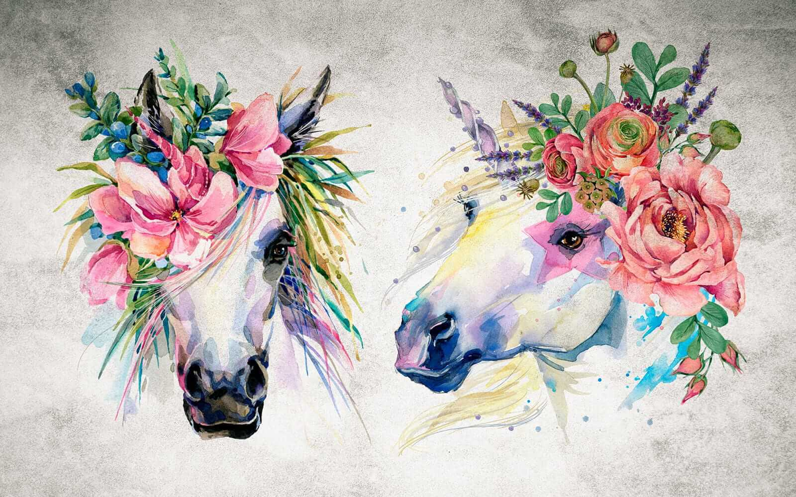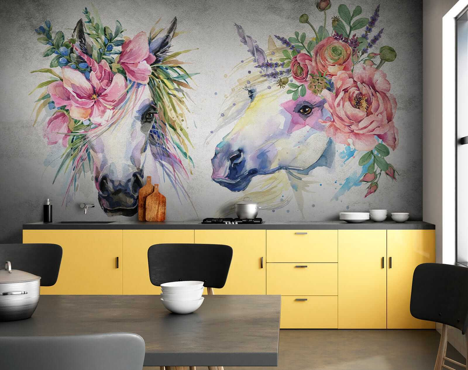 Képzeld el, ahogy besétálsz egy szobába, és ezek a lenyűgöző, virágkoronákkal díszített lovak fogadnak! Ez a vibráló falfestmény színpompát és szeszélyt visz bármilyen térbe – tökéletes gyermekszobába, gyerekszobába vagy akár kreatív műterembe. Az akvarell hangulat egyszerűen álomszép, szinte olyan, mintha egy mesekertbe léptél volna. A finom virágok és a lovak kifejező szemei olyan varázslatos és nyugodt hangulatot kölcsönöznek, amelynek nehéz ellenállni.