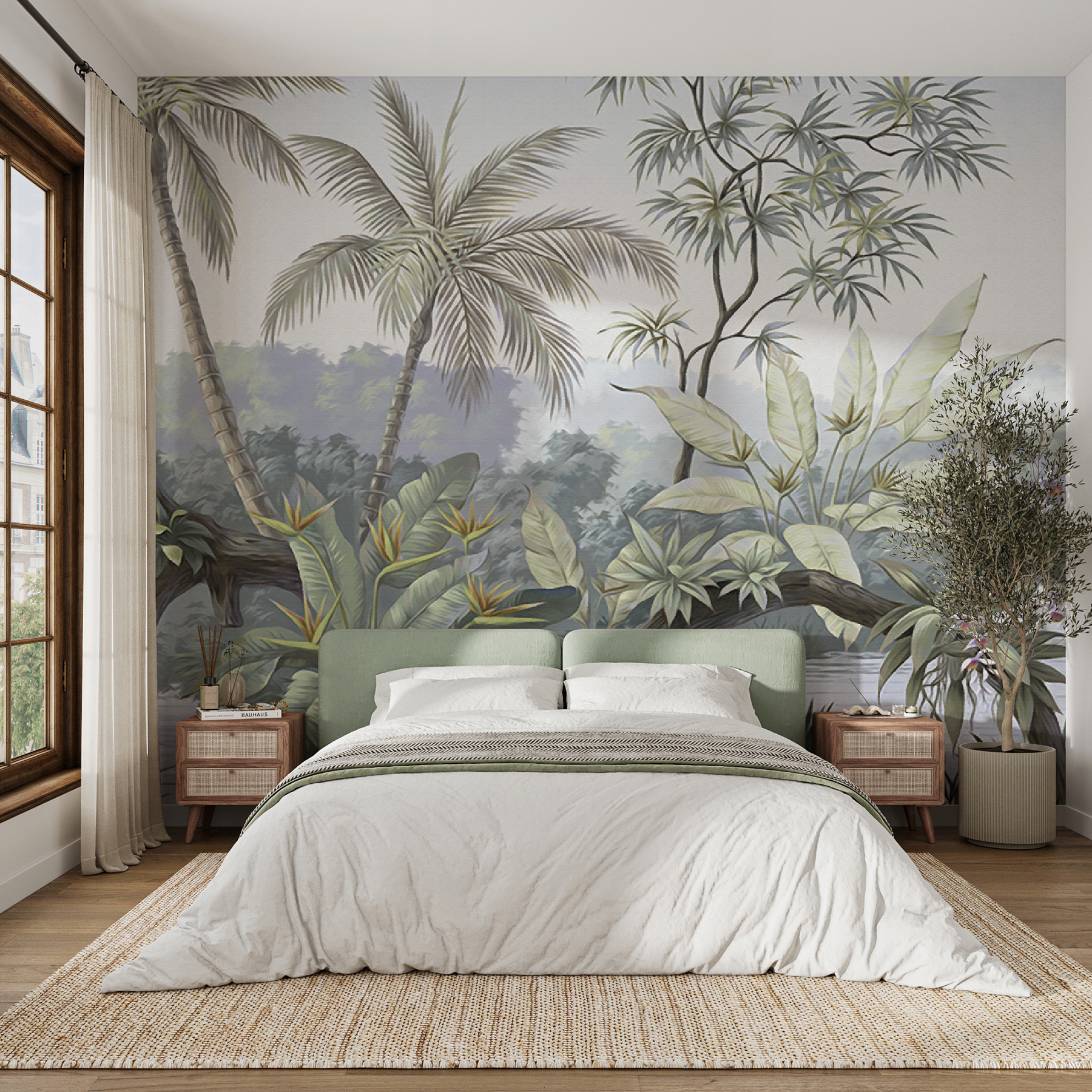 Képzelje el, hogy egy álomszép trópusi paradicsom veszi körül – ropogós pálmák és buja zöld növényzet, repülőjegy nélkül! Ez a falfestmény, “Egy virág elmosódott képe”, egy nyugodt paradicsomba rántja Önt. Képzelje el, ahogy a reggeli kávéját kortyolgatja, miközben a ködcsókos növényeket bámulja. Tökéletes arra, hogy a trópusok hangulatát bármelyik szobába beillessze. Segít elmenekülni, még ha csak egy pillanatra is. Ideális az álmodozóknak, a növények szerelmeseinek, vagy bárkinek, aki nyugodt hangulatra vágyik. Nyugodt és frissítő, a természet lágy altatódalát suttogja otthonába. Olyan érzés, mint egy mini vakáció minden nap!