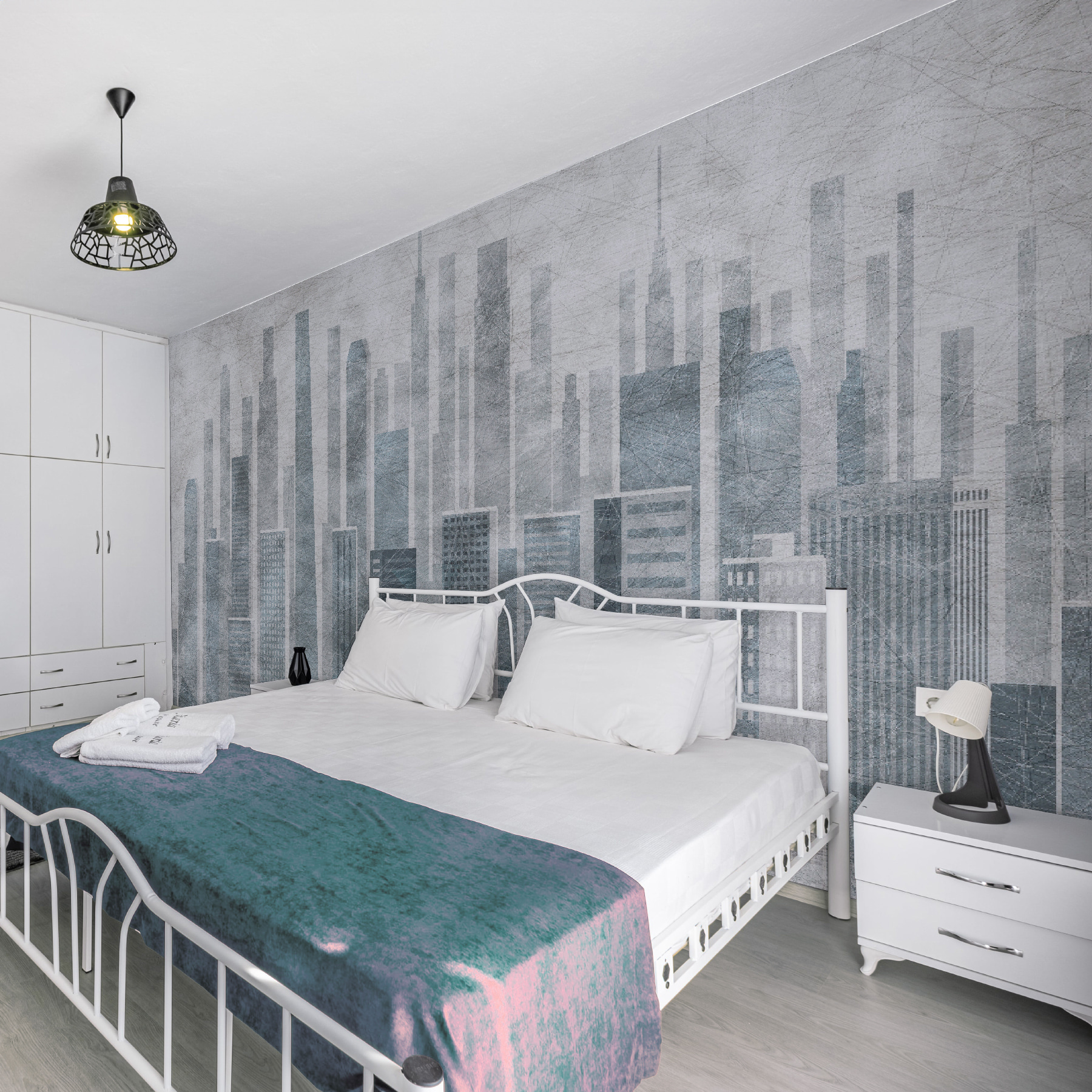 A falfestmény tompa szürkés és kék színei kifinomult, mégis éles hangulatot kölcsönöznek bármely helyiségnek. Olyan, mintha egy high-tech világban élnél anélkül, hogy elhagynád otthonodat. Gondoljon csak arra, hogy a tornyosuló épületek alatt összebújhat egy könyvvel, vagy hagyja, hogy a gondolatai elkalandozzanak, miközben a reggeli kávéját kortyolgatja…