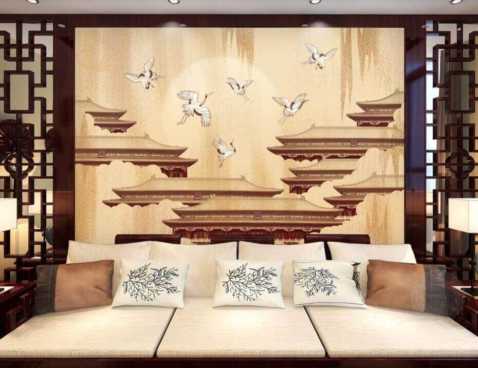 Képzelje el, hogy belép egy szobába, amelyet ez a lenyűgöző falfestmény díszít, melyen darvak szárnyalnak kecsesen az égen. Minden egyes madár úgy érzi, mintha a szabadság egy pillanatát élné át, miközben elegáns háztetők felett siklik, amelyek távoli országok történeteiről suttognak. Ez a falfestmény nem csupán a falat díszíti, hanem az egész teret átalakítja, békét és nyugalmat árasztva.