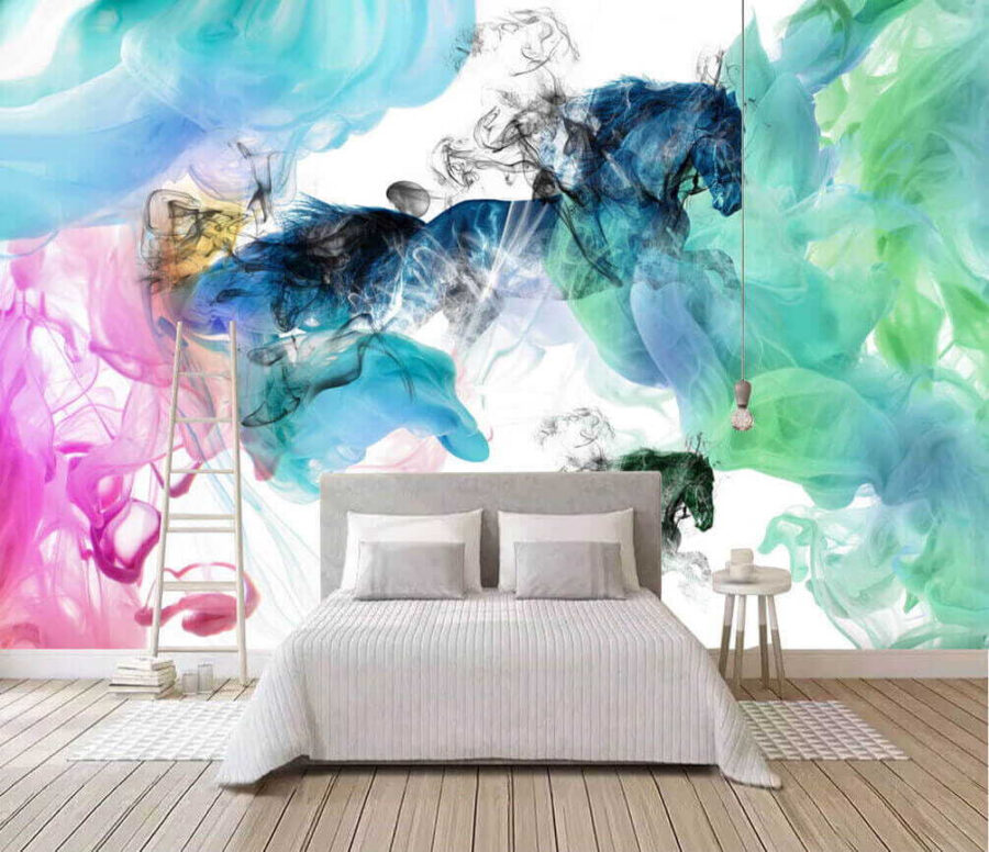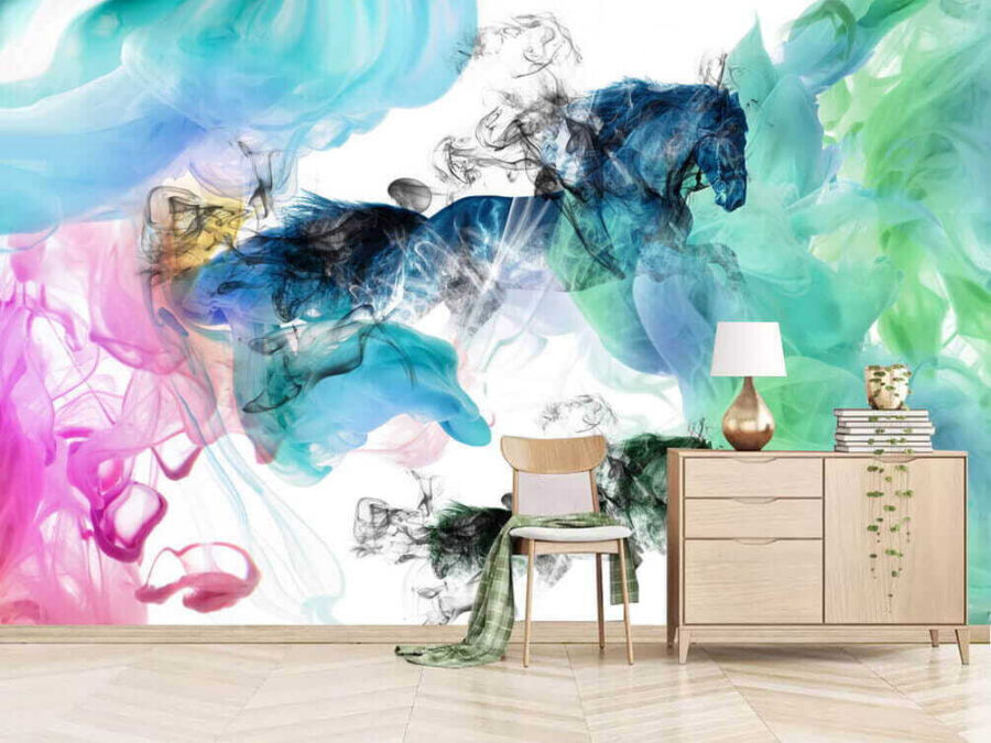 Alakítson át bármilyen teret ezzel a lenyűgöző falfestménnyel, amelyen színes füstfelhőkön keresztül táncoló lovak láthatók. Olyan, mint egy vad álmodozás, ahol a művészet és a képzelet ütközik. A vibráló árnyalatok – gondolj a kék színre, amely játékos rózsaszínnel keveredik – energiát és bájt kölcsönöznek, így biztosan beszédtéma lesz. Képzelje el egy hangulatos olvasósarokban vagy egy merész falon. Lehet, hogy rögtönzött táncpartikat vagy nyugodt estéket inspirál egy könyv és egy csésze tea társaságában. Minden egyes pillantásával egy kicsit élettel telibbnek fogja érezni magát, mintha egy friss levegőt szívna be az otthonába. Ráadásul ki ne szeretné, ha egy ló galoppozik egy színes felhőben? Na ez aztán a hangulat!