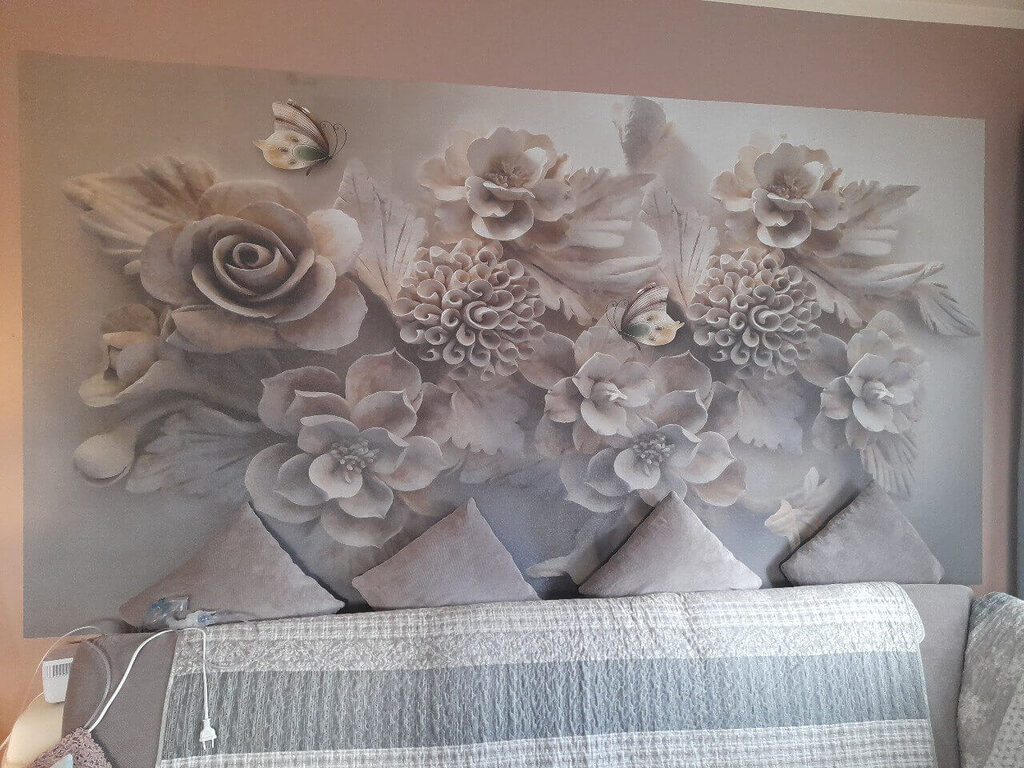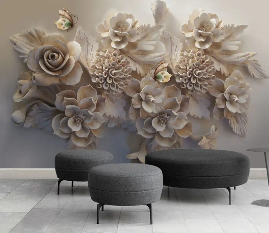 Alakítsa át terét ezzel a “Falfestmények Elegáns virágok kecses pillangókkal” remekművel! Ez több mint egy falfestmény – olyan, mintha egy nyugodt kertet hoznál be a házba. Képzelje el, hogy minden reggel ezekre az élethű virágokra és szeszélyes pillangókra ébred… Beszéljünk arról, hogy a napot jó hangulatban indíthatod! A rózsák és virágok bonyolult 3D-s részletei mélységet és textúrát kölcsönöznek a falaknak, így élettel telivé varázsolják azokat.