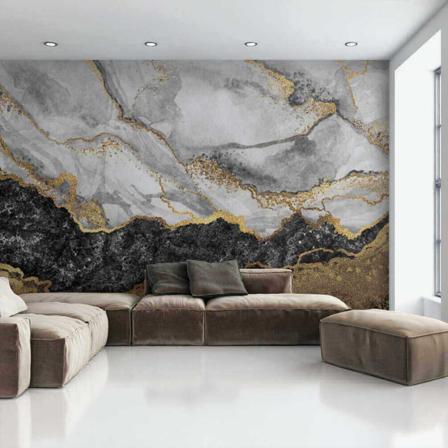 Alakítsa át terét stílusos elvonulási hellyé ezzel a lenyűgöző falfestménnyel. Képzelje el, hogy egy olyan szobába lép be, amely olyan, mint egy elegáns, modern galéria, ahol elegáns márványörvények táncolnak a falon. A sötét és világos tónusok keveredése mélységet kölcsönöz, míg ezek a finom hangsúlyok felfedezésre invitálják a szemet. Ez az a fajta darab, amely anélkül tesz kijelentést, hogy a figyelemért kiáltana. Képzelje el, ahogy a barátok összegyűlnek, és a szemük felcsillan a csodálattól. Ez a falfestmény olyan hangulatú, hogy beszélgetést vált ki, hangulatos sarkokat teremt, és talán még egy-két Instagram-pillanatot is inspirál. Tökéletes bármely olyan helyiségbe, amelynek szüksége van egy kis drámaiságra – ki gondolta volna, hogy a falak ennyi mindenre képesek?