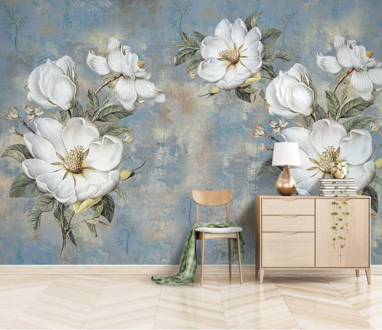 Alakítsd át bármelyik teret ezzel a lenyűgöző „Fehér virágok csoportja” faliképpel. Képzeld el, hogy belépsz a szobádba, és elegáns virágok fogadnak, mintha a tavasz úgy döntött volna, hogy véglegesen beköltözik. A puha, fehér szirmok gyönyörűen kontrasztot alkotnak az álomszerű kék háttérrel, nyugalom és varázslat érzetét keltve. Olyan, mintha egy kis kert lenne a lakásban – tökéletes egy hangulatos sarokhoz, vagy ahhoz az üres falhoz, amelyik már régóta figyelmet vár. A barátaid talán meg is kérdezik, hogy van-e titkos virágoskerted. Spoiler alert: ez csak a tapéta! Ez egy egyszerű módja annak, hogy felvidítsd a hangulatot, és minden nap egy kicsit különlegesebbé tegyed. Ráadásul nem kell öntözni!