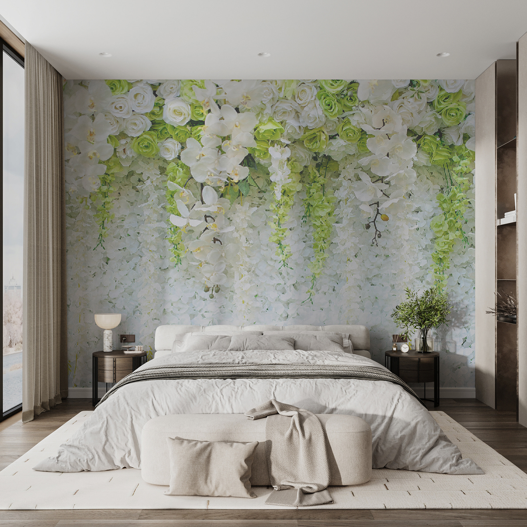 Képzelje el, hogy belép egy szobába, és egy lenyűgöző, fehér és zöld virágokkal díszített kaszkád fogadja a falat. Ez a “Fehér és zöld virágok csoportja” falfestmény olyan, mintha egy nyugodt kertbe lépne anélkül, hogy elhagyná otthonát. A részletek lenyűgözőek – szinte olyan érzés, mintha kinyújtanád a kezed és megérintenéd a szirmokat. Tökéletes arra, hogy lágy, természetes hangulatot kölcsönözzön bármelyik szobának.