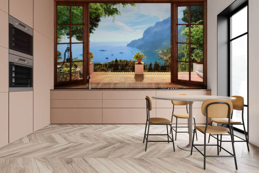 Képzelje el, hogy belép a szobájába, és azonnal egy nyugodt erkélyre kerül, ahonnan lélegzetelállító kilátás nyílik a tengerre! Ez a “Fali falfestmény növény egy cserépben” a természet nyugalmát ötvözi az építészet bájával, és egy álomszép, festői ablakot ad a helyiségednek egy másik világra. Olyan, mint egy minivakáció a szemednek – anélkül, hogy valaha is elhagynád a kanapédat. Tökéletes egy kis nyugalom és elegancia hozzáadásához. Ráadásul ki ne szeretné, ha egy kis zöld és óceáni szellő vibrálna a napjában? Pontosan a megfelelő menekülés bármelyik szobába – így a mindennapi élet egy kicsivel varázslatosabbá válik!