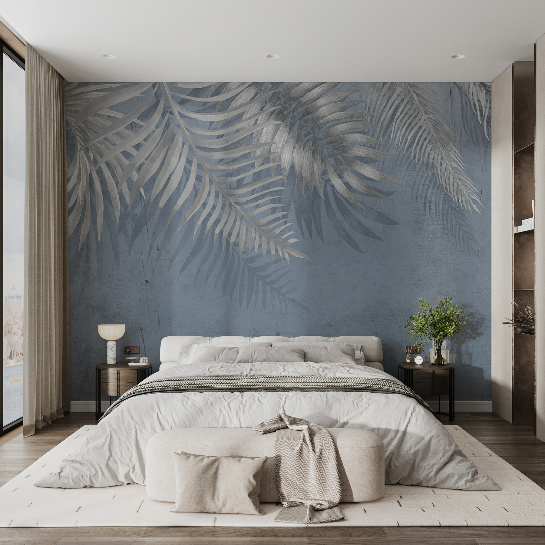 Alakítson át egy üres falat frissítő oázissá ezzel a vibráló falfestménnyel, amely nyugtató pálmaleveleket ábrázol nyugodt kék háttérrel. Képzelje el, hogy azonnal megnyugszik, amikor belép a szobába, és lelki szemei előtt a kecses lombok lágyan ringatózó lombjai fogadják. Olyan, mintha egy mini vakációra indulna otthonában, a homokos lábujjak nélkül. Tökéletes nappaliba, hálószobába vagy akár egy hangulatos zugba, ahol a pihenés uralkodik. Párosítsd egy kis zölddel, és voilá, azonnali hangulat! Ez nem csak dekoráció – ez egy olyan hangulat, amely azt suttogja: “Lazíts, megérdemled”. Biztos, hogy még a szobanövényei is értékelni fogják a frissítést.