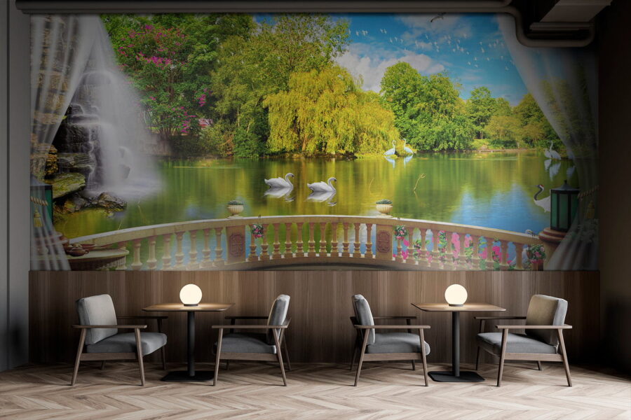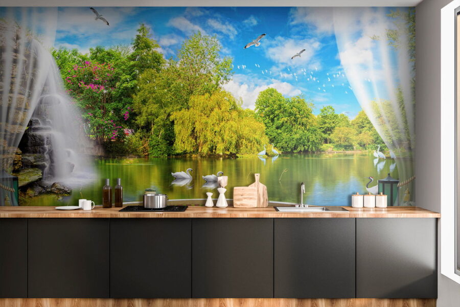 Varázsoljon bármelyik szobát nyugodt oázissá ezzel a bájos falfestménnyel, „Tó madarakkal és fákkal”. Képzelje el, ahogy reggeli kávéját kortyolgatja, és hirtelen a világ zűrzavara elhalványul – csak Ön, a nyugodt víz és a kecses hattyúk, akik elúsznak Ön mellett. Az élénk zöldek és élénk kékek a természetet hozza a falaira, így minden nap úgy érzi, mintha egy kellemes sétát tenne a vízparton. Ez a falikép tökéletes egy hangulatos sarokhoz vagy egy élénk nappalihoz, és nem csak dekoráció; egy kis darabka béke, amely azt suttogja: „Vegyél egy mély levegőt, megérdemled.” Nem itt az ideje, hogy befogadja ezeket a nyugtató hangulatokat?