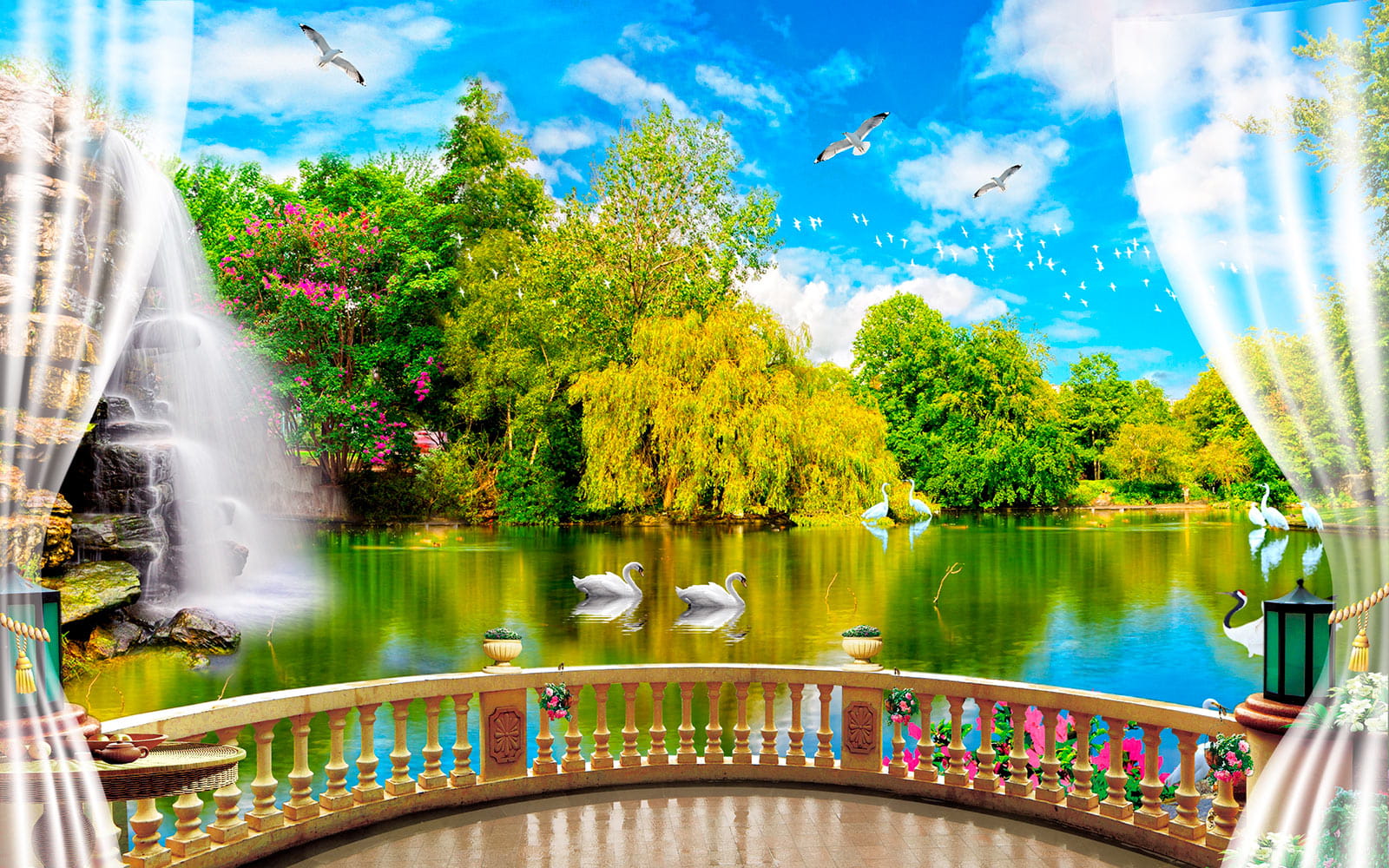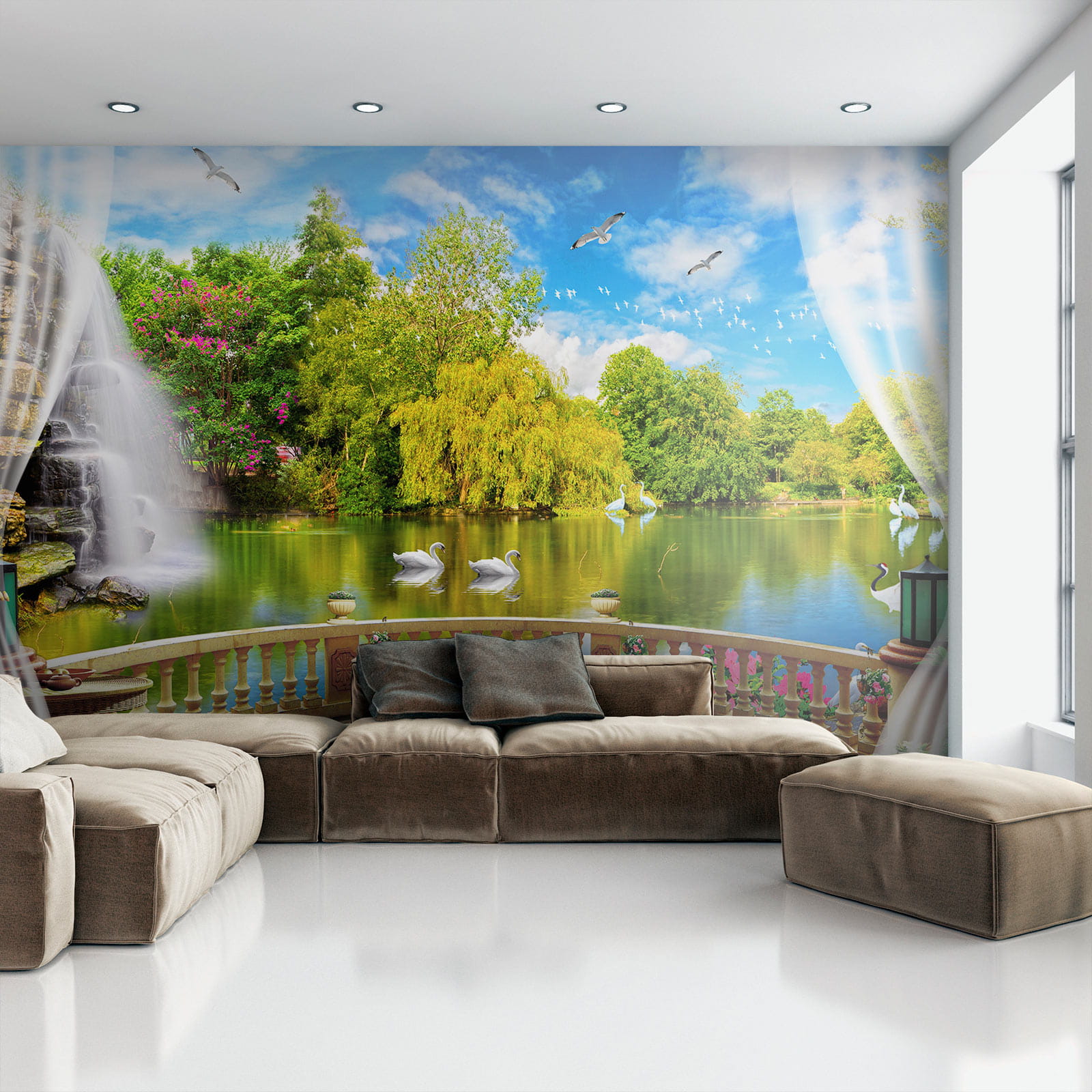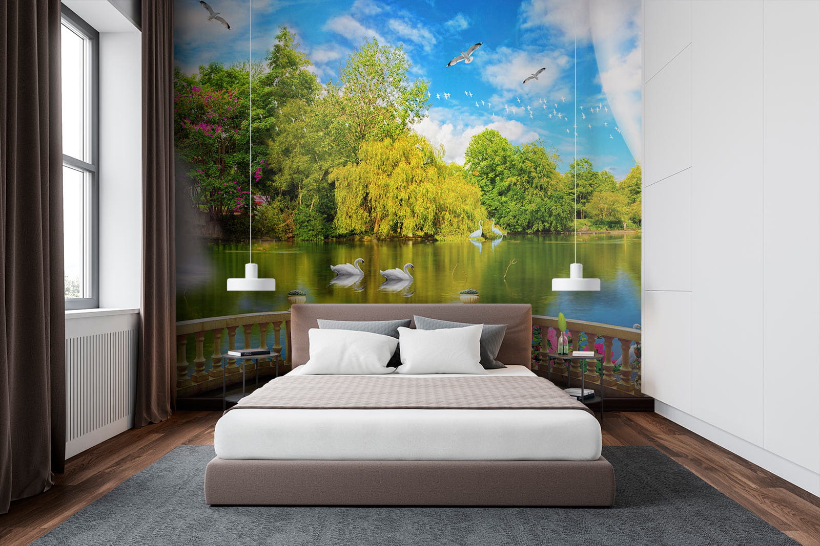 Transform any room into a tranquil oasis with this charming mural, “View of a Pond with Birds and Trees.” Imagine sipping your morning coffee, and suddenly the chaos of the world fades—just you, serene waters, and graceful swans gliding by. The vibrant greens and lively blues bring nature right to your walls, making every day feel like a leisurely stroll by the water. Perfect for a cozy nook or a vibrant living room, this mural isn’t just decor; it’s a little slice of peace that whispers, “Take a breath, you deserve it.” Isn’t it time to embrace those calming vibes?