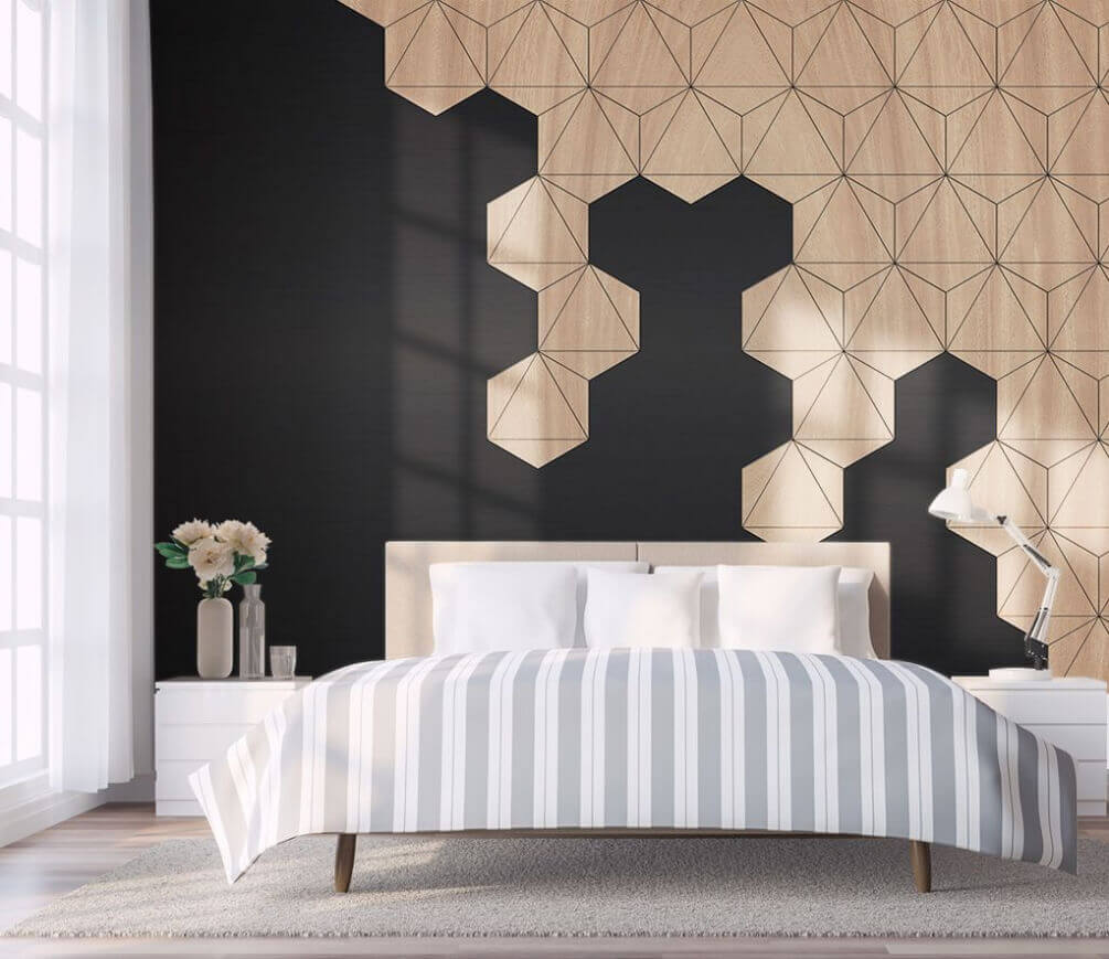 A tér átalakításához nem mindig szükséges nagy felújítás – néha egy egyedi falfestmény is elegendő! Ez a lenyűgöző faldekoráció fából készült hatást kelt a letisztult fekete háttér előtt, hűvös hatszög alakú formákkal, amelyek modern hangulatot kölcsönöznek neki. Képzelje el, hogy belép egy szobába, és átjárja az a hangulatos, mégis kortárs érzés. Mintha a természet és az építészet közös gyermeke lenne! Bármely helyiségbe tökéletesen illik, legyen az nappali, iroda vagy kreatív sarok. Nem is beszélve arról, hogy remek beszélgetésindító – ki ne akarna beszélgetni ezekről a lenyűgöző mintákról? Készüljön fel arra, hogy imádni fogja a falait!