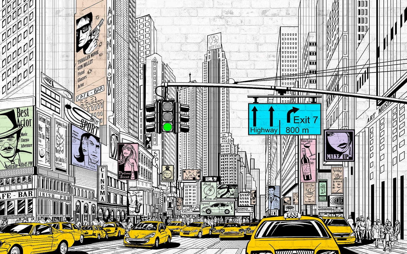 Van egy fal, aminek egy kis lendületre van szüksége? Nézd meg ezt a “Sárga és fekete autó” falfestményt! Képzeld el, hogy belépsz a szobádba – olyan, mintha egy nyüzsgő, energiával teli városi utcán lennél! Azok a sárga autók a hűvös fekete-fehér városképhez képest olyanok, mintha egy képregény elevenedne meg. Tökéletes gyerekszobába – imádni fogják a kalandos hangulatot! Vagy talán egy irodába? Ez a belvárosi pezsgést adhatná meg anélkül, hogy elhagynád az otthonodat. Akár a város fényeiről álmodsz, akár csak valami másra vágysz – ez a falfestmény megváltoztatja a játékot! Akassza fel, és hirtelen a helyiségének történetei lesznek. Király, igaz?