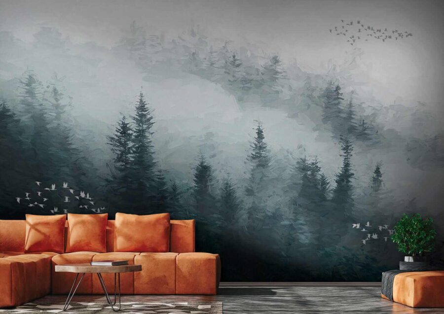 A “Ködös erdő madarakkal” falfestmény segítségével bármelyik szobát nyugodt meneküléssé varázsolhatja. Képzelje el, hogy ködös fákra és a levegőben sikló madárrajra ébred. Olyan, mintha egy kis vadságot hozna be a házba – tökéletes egy hangulatos nappaliba vagy egy nyugodt hálószobába. A zöld és a szürke nyugtató árnyalatai olyan légkört teremtenek, amely pihenésre és álmodozásra hív. Képzelje el, ahogy egy jó könyvvel összegömbölyödik, lágy zenét hallgat, és teljesen nyugodtnak érzi magát – mintha a természet nyugalma ölelné körül a falait. Egy kedves érintés azoknak, akik hűvös hangulatra vágynak anélkül, hogy a szabadba lépnének!