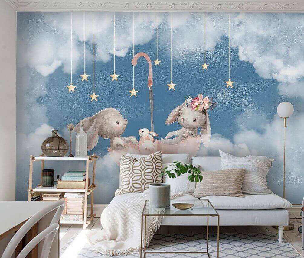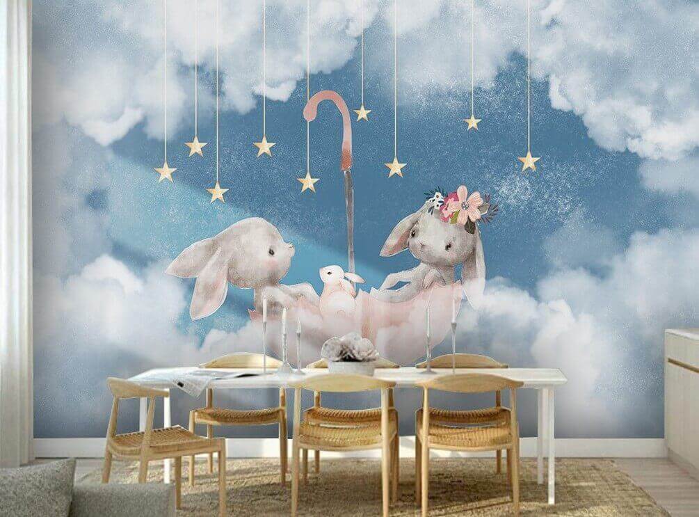Változtassa meg térét a „Két nyuszi rózsaszín esernyő alatt” elbűvölő varázsával. Ez a varázslatos falfestmény játékos fantáziát kölcsönöz minden szobának, imádnivaló nyuszikkal, akik álomszerű felhők között lebegnek, és egy élénk rózsaszín esernyő köti össze őket. Olyan, mintha gyengéden átölelné a falakat, tökéletes választás a gyerekszoba, a játszószoba vagy akár a hangulatos olvasósarok felvidításához. Képzelje el, hogy teázik ennek a falfestménynek a hátterében – ki ne mosolyogna el? Olyan, mint egy kis varázslat, amely örömöt kelt. A lágy színek és az édes részletek álmodozásra és nevetésre csábítanak, így minden pillantás egy kis menekülés.