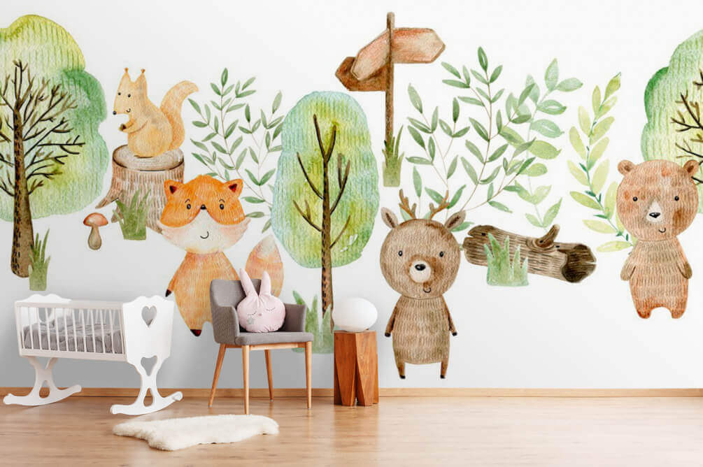 Bármelyik szobát hangulatos erdei menedékké varázsolhatja ez a kedves akvarell falfestmény, amelyen aranyos állatok és buja fák láthatók. Képzelje el a bájos mosollyal rendelkező rókát, a tuskón ülő mókust és a kissé zavartan pihenő medvét. Olyan, mintha egy kis erdőt hozna be otthonába! Tökéletes gyermekszobákba, játszószobákba vagy akár egy szeszélyes nappaliba is, örömöt kelt és gyermekkori emlékeket ébreszt. Játékos színekkel és szelíd hangulattal ez a falfestmény történeteket, nevetést és talán még néhány vad álmodozást is inspirál. Ki ne szeretne egy kis állati varázslatot a falain?