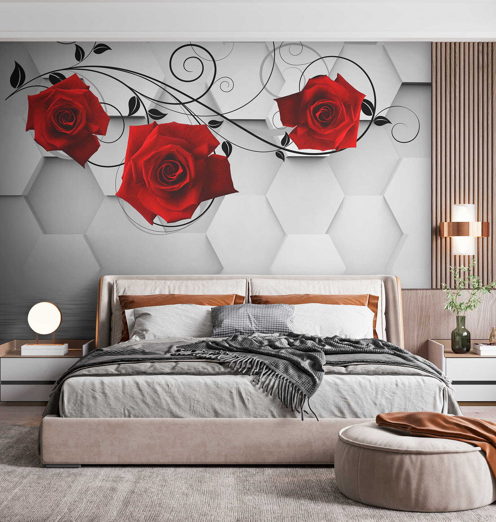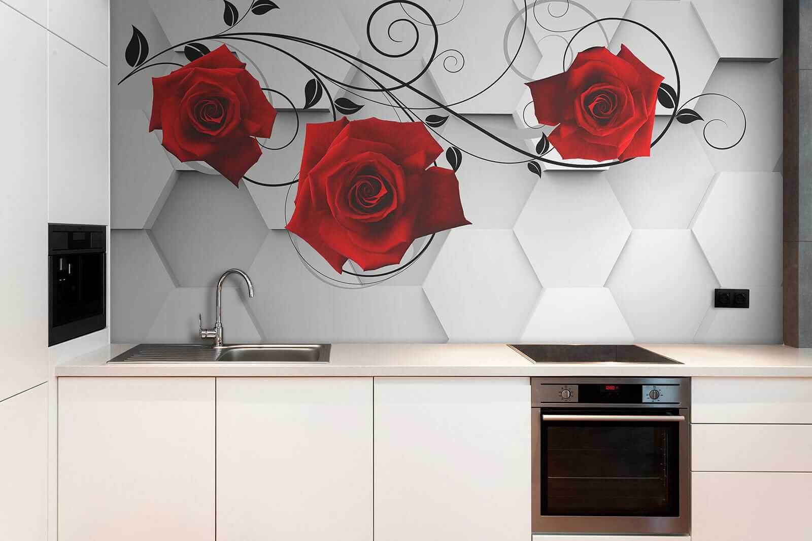 Alakítsd át a teredet ezzel a lenyűgöző faliképpel, amelyen élénk piros rózsák elegáns fekete indákkal fonódnak össze. Mintha egy virágzó kert lenne a nappalidban, csak öntözőkanna és alkalmi méhek zümmögése nélkül. A sima hatszögek háttérként modern hangulatot teremtenek, míg a rózsák romantikus hangulatot kölcsönöznek – tökéletesek egy hangulatos légkör megteremtéséhez. Legyen szó egy lusta hétvégi reggeli kávéról vagy egy élénk vacsoráról, ez a falikép pont a megfelelő hangulatot teremti meg. Ez az a fajta dekoráció, amely beszélgetéseket és talán néhány álmodozást is kivált a titkos kertekről. Ki ne érezné magát egy kicsit inspiráltabbnak, ha ezeket a szépségeket bámulja?