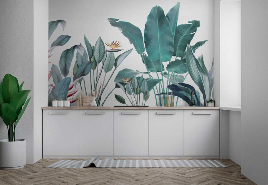 Át szeretné alakítani a terét? Nézze meg ezt a gyönyörű “Trópusi lombozat élénk színekkel” nevű falfestményt – tökéletes, hogy a dzsungel egy csobbanását egyenesen a nappalijába hozza! Képzeld el, hogy minden nap erre a vibráló zöldre ébredsz… olyan, mint egy mini vakáció a szemednek. A merész színek keveréke és a levelek és virágok bonyolult részletei olyan érzést keltenek, mintha egy buja, trópusi paradicsomban állnál.
