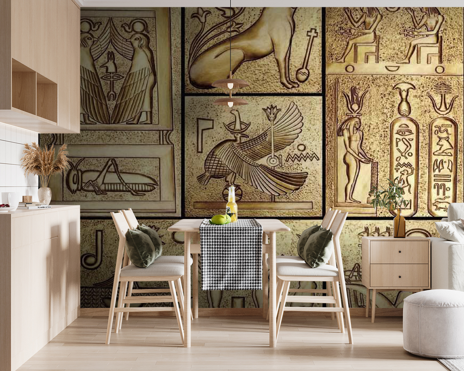 Alakítsa át terét az ősi egyiptomi szimbólumok lenyűgöző kollázsával. Olyan, mintha egy múzeumi kiállítás lenne az otthonodban! Képzelje el, ahogy elsétál e falfestmény mellett, és úgy érzi, hogy a fáraók és a misztikus istenségek történetei életre kelnek. Minden egyes bonyolult minta felfedezésre invitál, és olyan beszélgetésekre késztet, amelyek még sokáig elidőznek a vendégek távozása után is. Meleg és földhözragadt, így bármelyik helyiséget hívogatóvá és egy kicsit titokzatossá teszi – tökéletes azok számára, akik értékelik a történelmet vagy egy kis szeszélyt a dekorációjukban. Képzelje csak el: egy hangulatos este, lágy fények és ősi történetek csendes suttogása veszi körül. Készüljön fel egy komoly, szemet gyönyörködtető bájra!