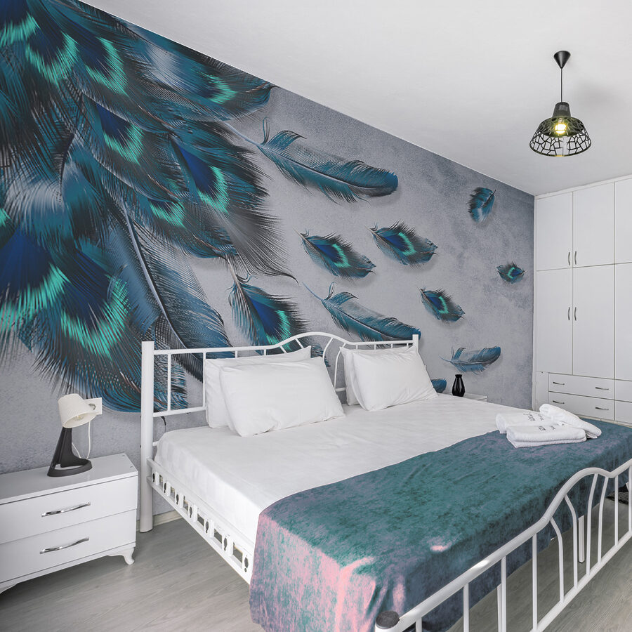 Alakítson át bármilyen helyiséget a varázslatos Blue Feathers fali falfestményekkel. Képzelje el, hogy a falakon táncoló, lenyűgöző tollak szelíd kaszkádjára ébred. A nyugodt kékek és az élénk zöldek nyugtató légkört teremtenek, amely tökéletesen alkalmas egy hosszú nap utáni pihenésre. Képzelje el a meghitt éjszakákat egy könyvvel, a design lágysága nyugalomba burkolja Önt. Olyan, mint egy lélegzetvételnyi friss levegő bármely térben. A barátok biztosan észreveszik majd ezt az egyedi vonást, és ki tudja, talán még egy tollas beszélgetést is kezdeményez! Tökéletes azok számára, akik egy kis személyiséget szeretnének a dekorációjukba csempészni.