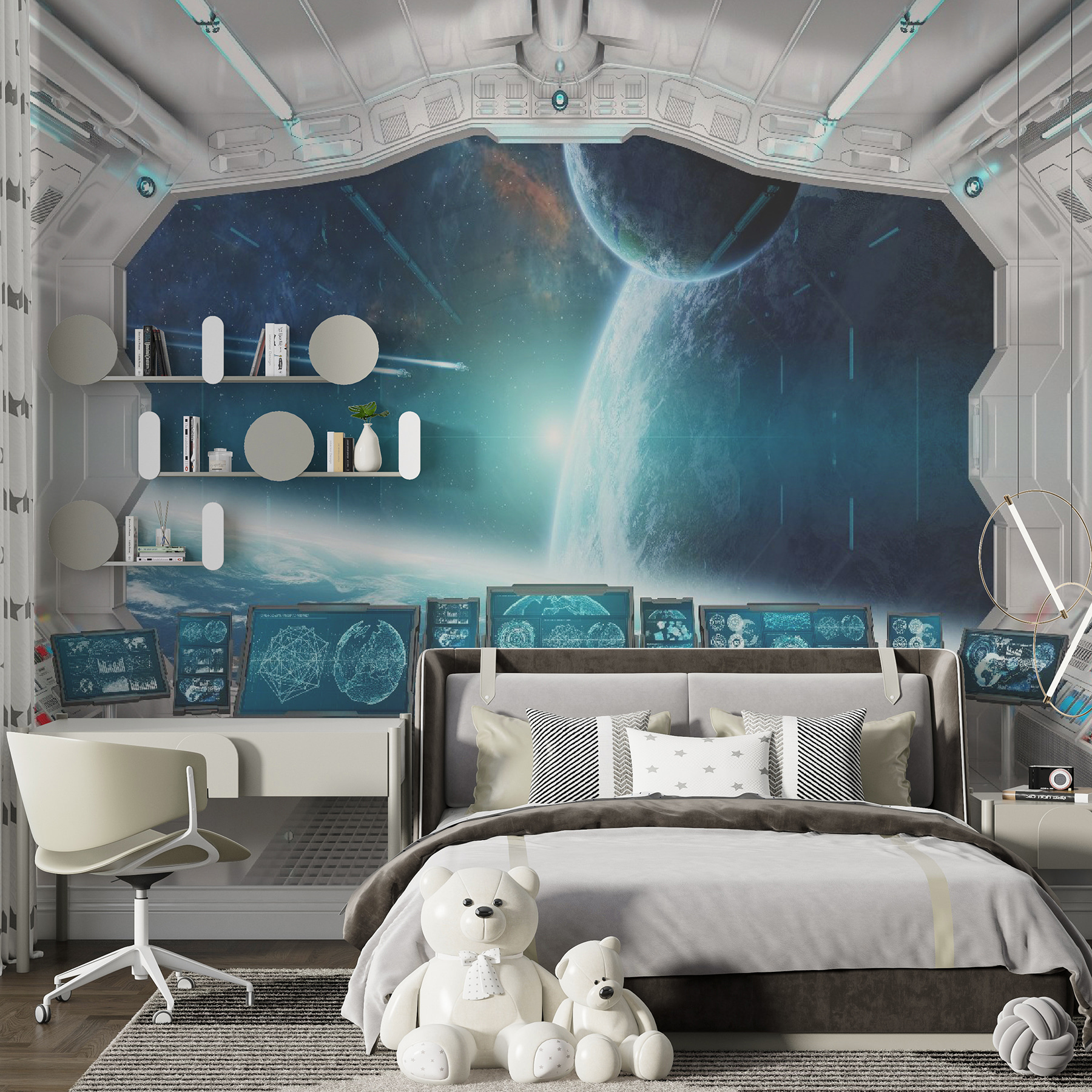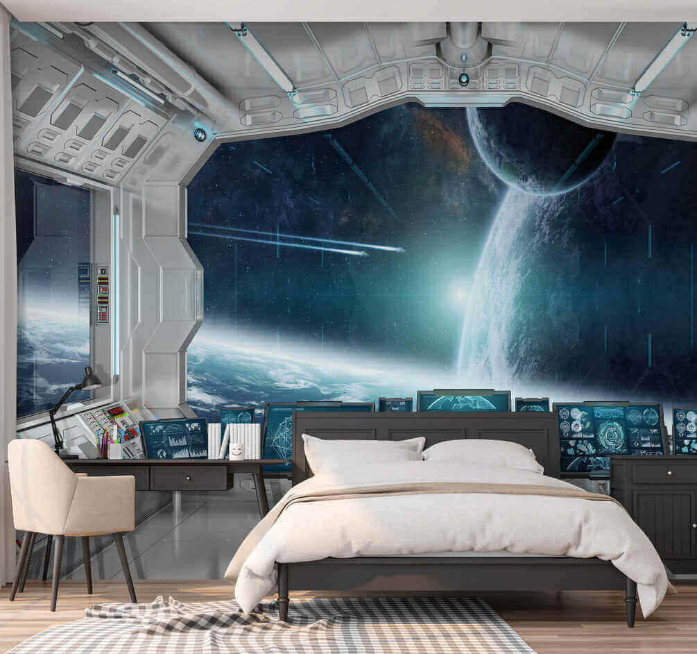 Képzeld el, hogy belépsz a szobádba, és úgy érzed, mintha egy űrhajót irányítanál – jól hangzik, igaz? Ez a falfestmény pontosan ezt teszi. Olyan, mint egy portál egy másik univerzumba, futurisztikus vezérléssel és lélegzetelállító kilátással az űrre! Tökéletes a nagy álmodozáshoz és a képzeletbeli kalandokhoz – a gyerekek és a fiatalos szívű felnőttek imádni fogják. Ez nem csak egy falfestmény; ez egy élmény. Telepítése a helyiségedben azonnal sci-fi csodavilággá változtatja azt. El tudja képzelni, hogy a reggeli kávéját távoli galaxisokra néző kilátással issza? Ez aztán a napkezdet! 🚀✨
