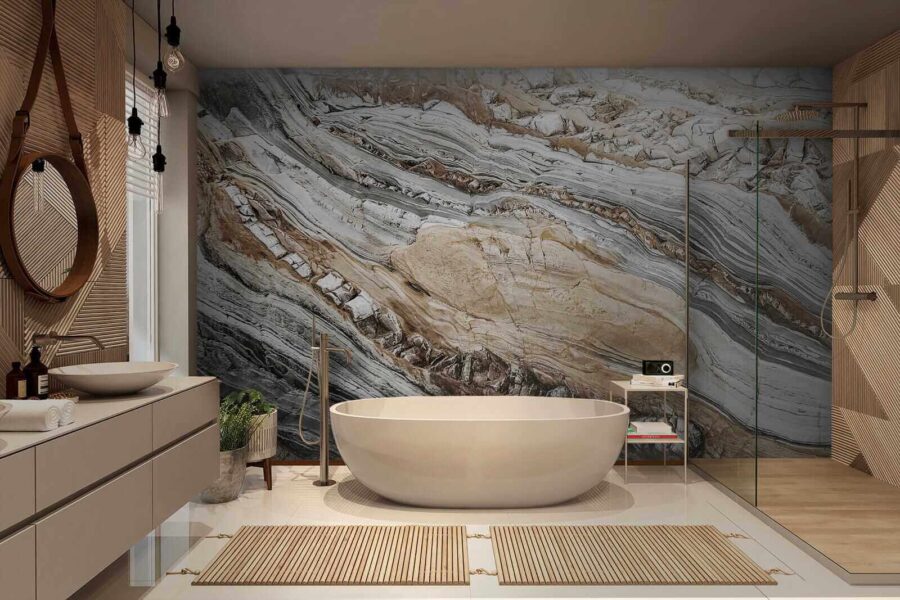 Képzelje el a következőt: besétál a nappalijába, és BAM – ott van, a természetes kőzetrétegek lenyűgöző megjelenítése nyugtató földszínekben. Ez a falfestmény olyan, mint a természet művészete, földes, földhözragadt hangulatot hozva a térbe. Hihetetlen 3D-s hatása van – szinte olyan érzés, mintha kinyújtanád a kezed, és megérintenéd ezeket a márványos textúrákat.