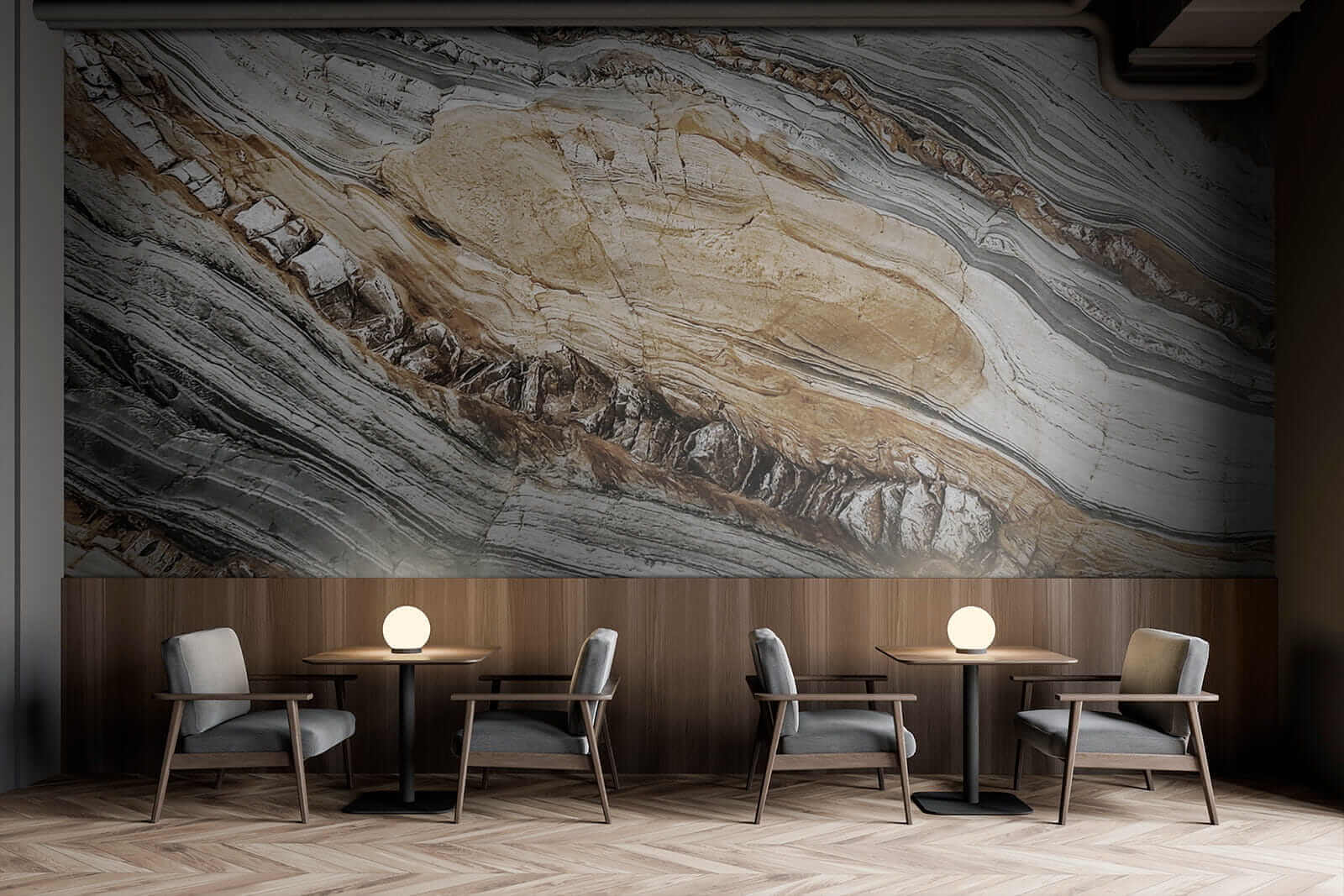 Képzelje el a következőt: besétál a nappalijába, és BAM – ott van, a természetes kőzetrétegek lenyűgöző megjelenítése nyugtató földszínekben. Ez a falfestmény olyan, mint a természet művészete, földes, földhözragadt hangulatot hozva a térbe. Hihetetlen 3D-s hatása van – szinte olyan érzés, mintha kinyújtanád a kezed, és megérintenéd ezeket a márványos textúrákat.
