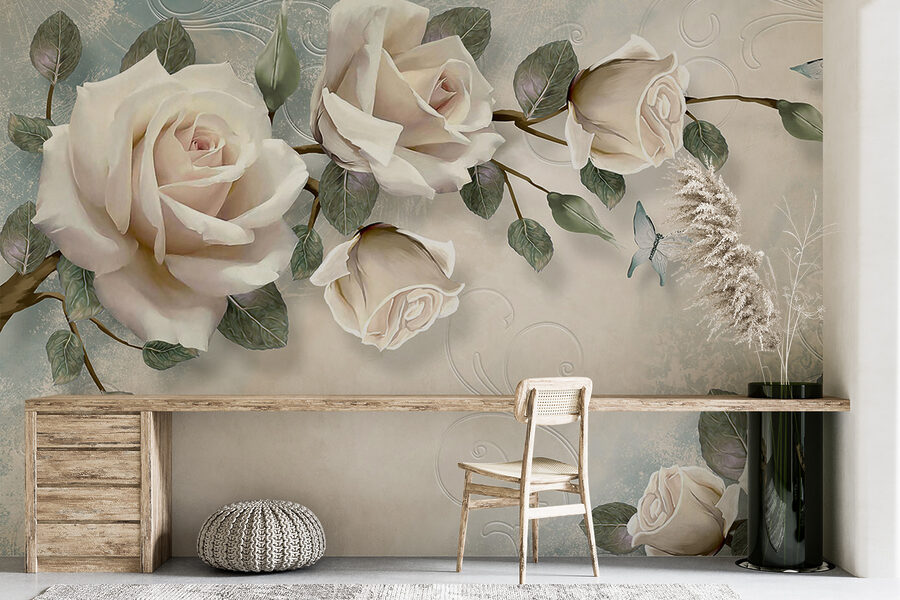 Szeretett volna valaha is egy kis nyugodt eleganciát vinni a lakótérbe? Ez a gyönyörű falfestmény fehér rózsáival és buja zöld leveleivel tökéletes erre! Képzelje el, hogy minden nap erre a lenyűgöző virágos szépségre ébred – olyan, mintha egy örök kert lenne a falán. A 3D hatás extra “wow” faktort ad, a rózsákat szinte élethűvé teszi.