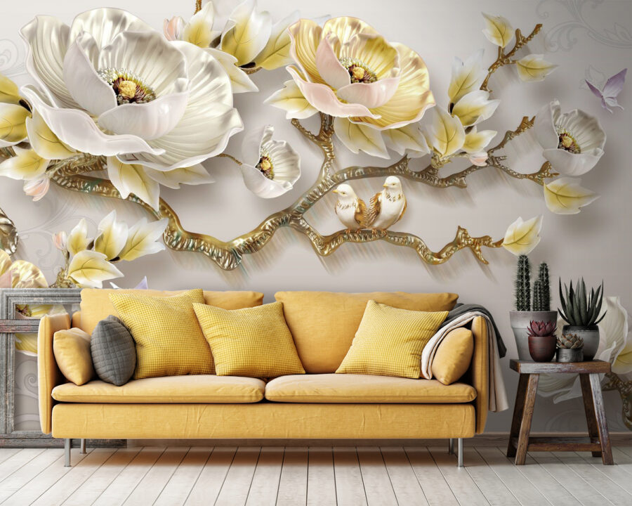 Bármelyik szobát nyugodt menedékké varázsolhatja ezzel a lenyűgöző faliképpel, amelyen finom virágok és bájos madarak láthatók. Képzelje el, hogy egy kert jelenete fogadja reggelente a falakon, ahol a virágok lágyan lengedeznek, és a madarak édes semmiségeket csicseregnek. Mintha a természet legjobban őrzött titka lenne – bent! A lágy színek békés hangulatot keltenek, tökéletesek álmodozásra vagy baráti délutáni összejövetelekre. Ráadásul a virágoknak van valami varázsuk, ami mindent fényesebbé tesz, nem igaz? Ez a tapéta nem csak dekoráció, hanem egy egész hangulat, amely melegséget és örömöt csempész az otthonába. Ki ne szeretné ezt?