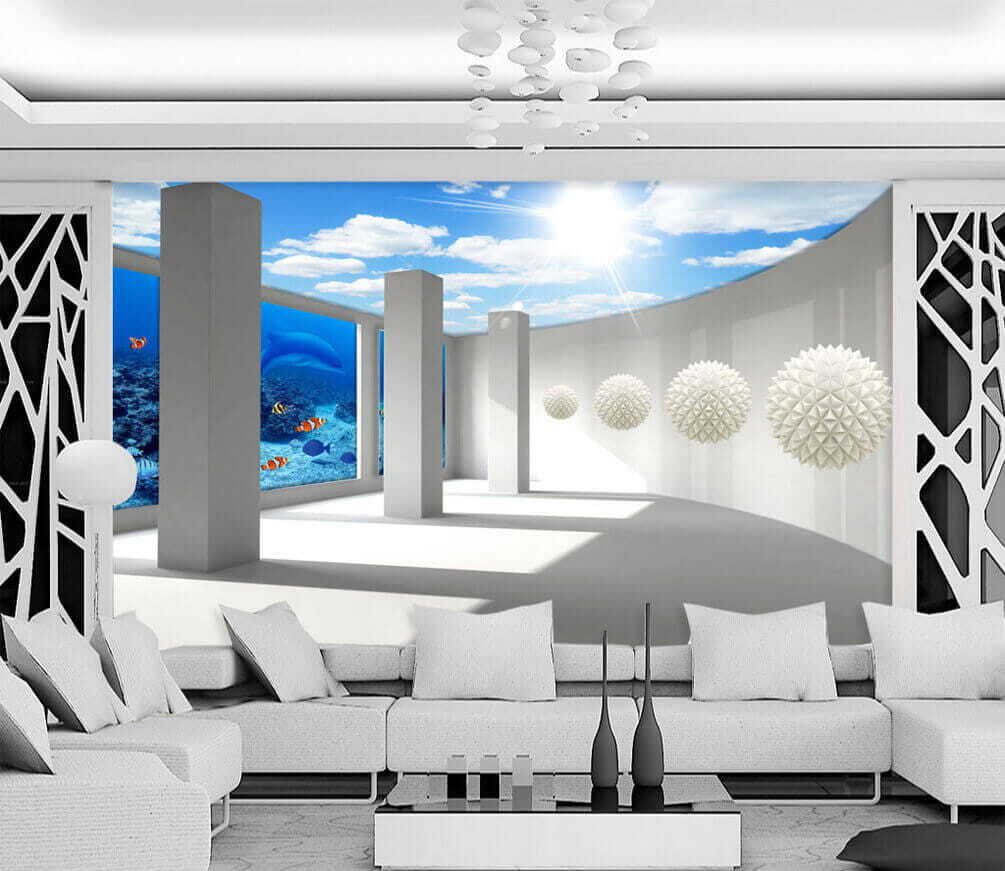 Ezzel a lenyűgöző faliképpel bármelyik szobát varázslatos víz alatti paradicsommá alakíthatja. A „Szoba oszlopokkal és halakkal” című kép meghívja Önt, hogy merüljön el a nyugalom óceánjában, ahol játékos halak úsznak el, és a napfényes hullámok táncolnak a térben. Képzelje el, ahogy a nappalijában pihen, és úgy érzi, mintha egy nyugtató tengeren lebegne. Ez olyan, mint egy nyaralás a falainak! Ez a tapéta tökéletes azok számára, akik el akarnak menekülni a mindennapokból, és színt és hűvös hangulatot kölcsönöz a helyiségnek. Barátai azt hihetik, hogy egy tengeri életet ábrázoló művészeti tanácsadót bérelt fel! Merüljön el, és engedje szabadjára a fantáziáját!