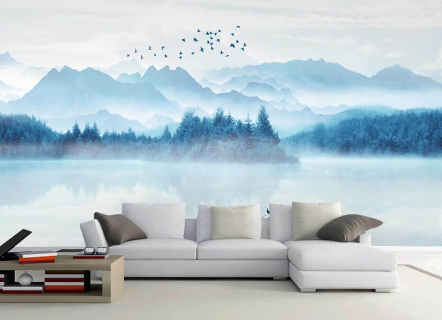 És ami még ennél is menőbb? A háttérben lévő ködös hegyek álomszerű, szinte varázslatos hangulatot kölcsönöznek. Szinte érzed a fenyőfák illatát, és hallod a szárnyak halk suhogását. Tökéletes hely egy csésze kávéhoz reggelente vagy néhány mély gondolathoz este, nem igaz? Ráadásul sokoldalú – nem véletlenül szerepel a “Népszerű falfestmények” kategóriában. Úgy tűnik, mindenki szereti a nyugalmat, amit hoz.