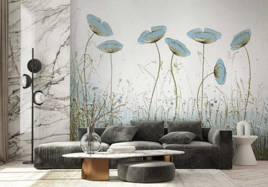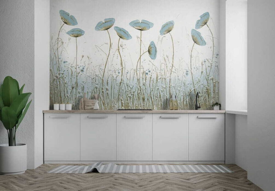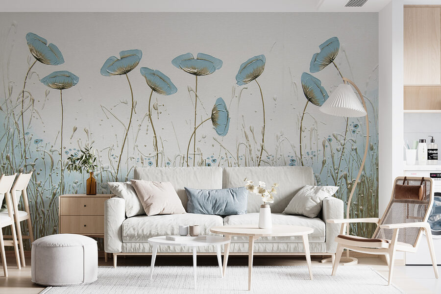 Szerette volna valaha is a természetet a belső térbe vinni? Ez a lenyűgöző falfestmény lehet a válasz. Képzelje el – finom kék virágok lágyan ringatóznak, mintha éreznék, ahogy a lágy szellő végigsimít rajtuk. Azonnal megnyugtató, igaz?