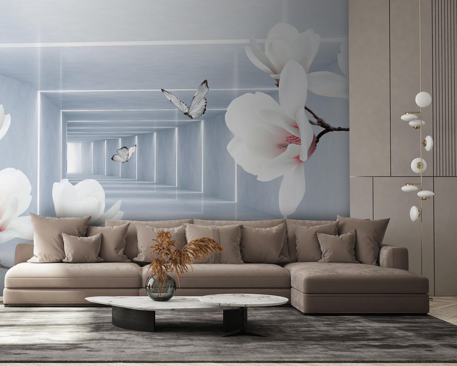 Varázsolja el bármelyik teret a varázslatos „Fehér virágok és pillangók” faliképpel. Ez a gyönyörűség finom virágokkal és kecses pillangókkal nyugtató hangulatot teremt, tökéletes a nappaliba vagy egy hangulatos olvasósarokba. Képzelje el, ahogy teát kortyolgatva gyönyörködik ezekben az elegáns virágokban – szinte úgy tűnik, mintha a természet titkait suttognák. A lágy színek légies hangulatot teremtenek, így a szobák nagyobbnak és világosabbnak tűnnek. Tökéletes azok számára, akik mindennap el akarnak menekülni egy nyugodt világba. Csak figyelmeztetésképp: előfordulhat, hogy a szokásosnál gyakrabban fog álmodozni!