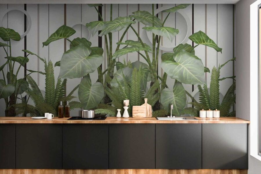 Képzelje el: a falakat élénk, buja levelek borítják, amelyek a sima csíkok ellenében pompáznak… komolyan, olyan, mintha a dzsungel egy kis része lenne a nappalijában a nedvesség nélkül! Ez a “buja levelek a csíkos falon” falfestmény könnyedén ötvözi a természet megnyugtató esszenciáját egy modern csavarral. Akár a növények szerelmese vagy, akinek kissé fekete hüvelykujja van, akár csak a természetre vágysz, ez a falfestmény segít neked – öntözésre nincs szükség. Képzelje el, ahogy a kanapéján heverészik, és érzi, ahogy a friss, zöld hangulat átjárja… az egész szobát életre kelti! Ráadásul ezek a menő kör alakú ékezetek furcsa, 3D-s hangulatot kölcsönöznek – a szemet gyönyörködtető látványról beszélve. Tökéletes arra, hogy egy kis bájt és nyugalmat vigyél bármilyen térbe. Ez nem csak egy falfestmény; ez egy beszélgetésindító, hangulatfokozó, egy kis szelet a leveles paradicsomból. 🌿