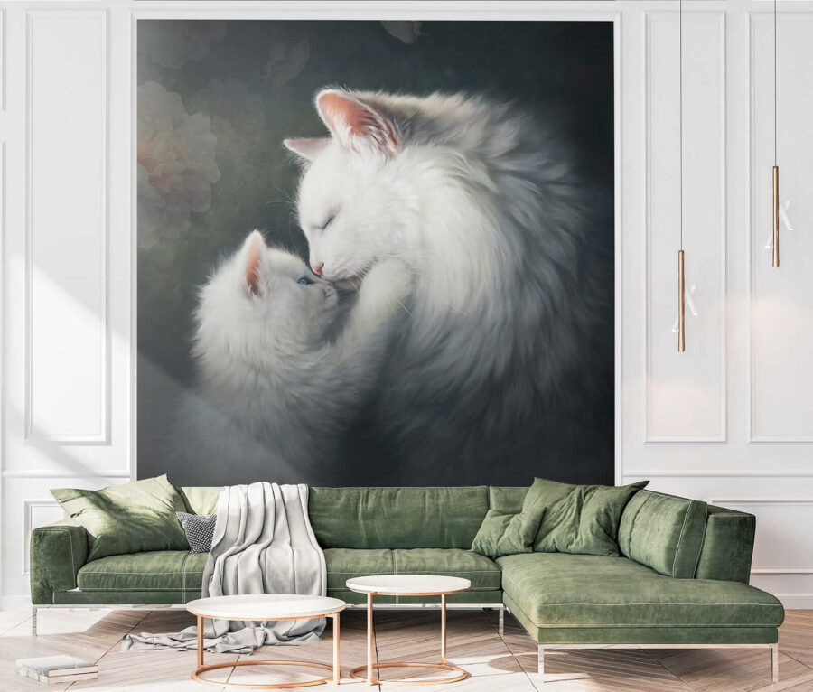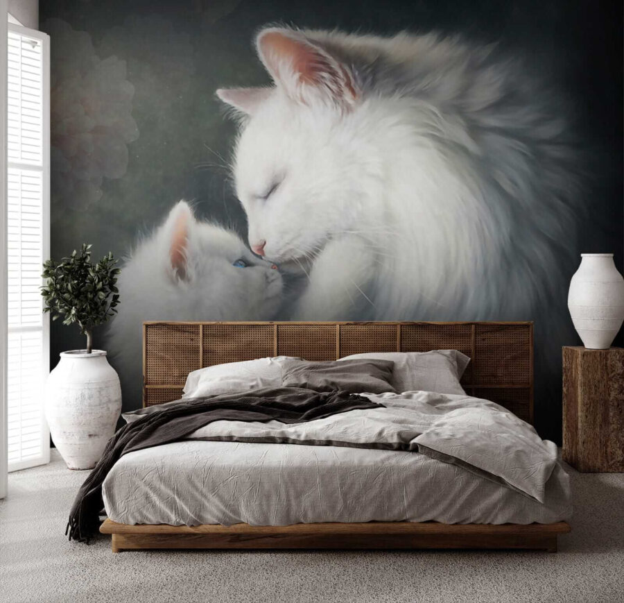 Ó, csak nézzétek ezt a két bolyhos drágaságot! Ez a “Feline Affection at its Finest” falfestmény teljesen megolvasztja a szíveket. Tökéletes minden olyan helyiségbe, ahol szükség van egy kis melegségre és szeszélyre – legyen az egy gyerekszoba, egy hangulatos olvasósarok vagy akár a nappali. Képzeld el, hogy minden nap erre az imádnivaló anya és cica párosra ébredsz… azonnali hangulatjavulás! És hé, ki tudna ellenállni a puha bundáknak és a gyengéd ölelésnek, nem igaz?