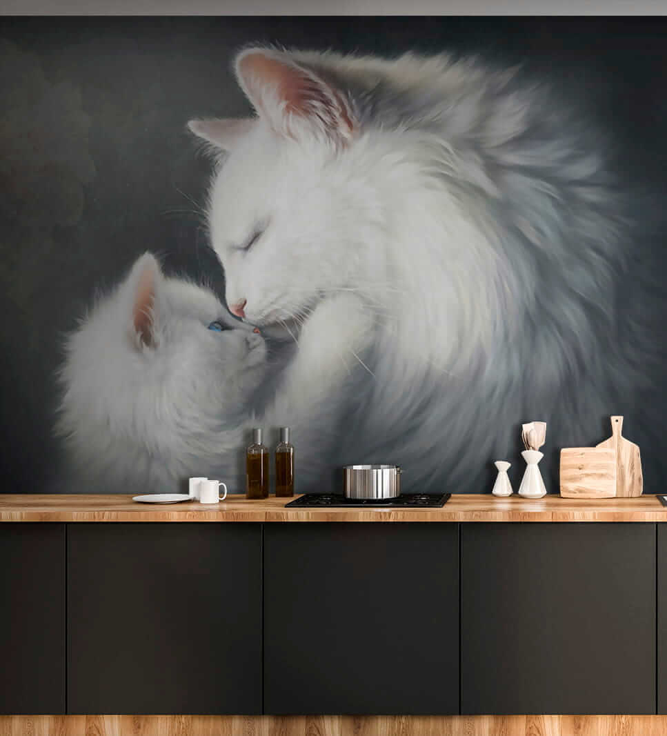 Ó, csak nézzétek ezt a két bolyhos drágaságot! Ez a “Feline Affection at its Finest” falfestmény teljesen megolvasztja a szíveket. Tökéletes minden olyan helyiségbe, ahol szükség van egy kis melegségre és szeszélyre – legyen az egy gyerekszoba, egy hangulatos olvasósarok vagy akár a nappali. Képzeld el, hogy minden nap erre az imádnivaló anya és cica párosra ébredsz… azonnali hangulatjavulás! És hé, ki tudna ellenállni a puha bundáknak és a gyengéd ölelésnek, nem igaz?