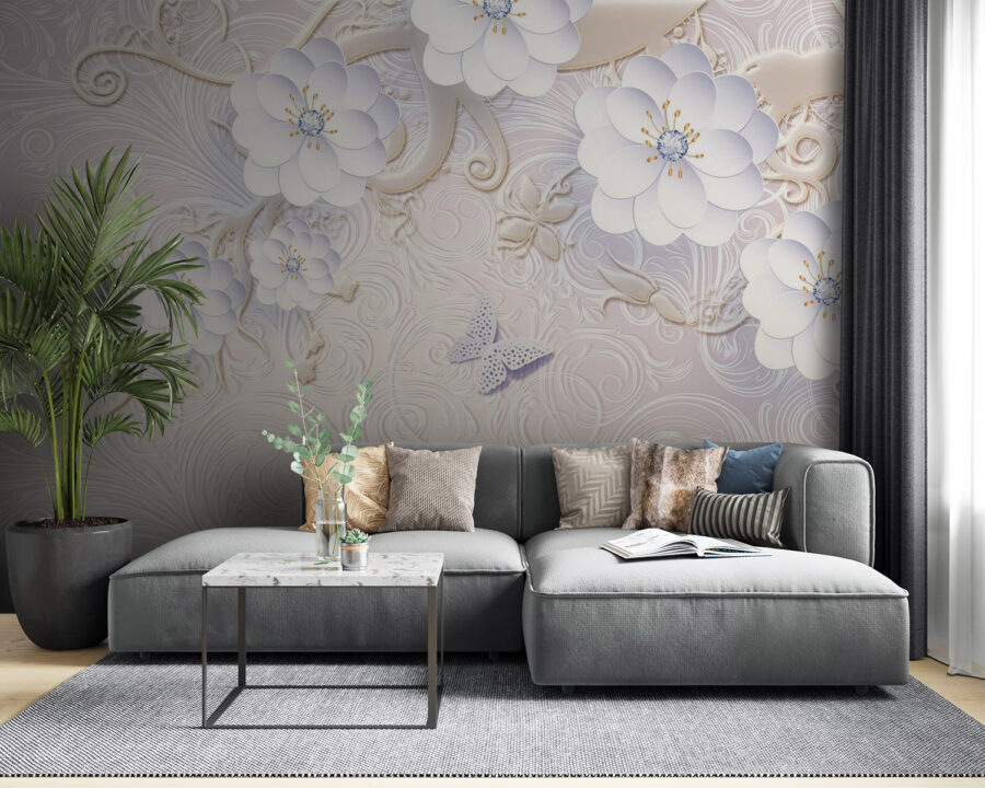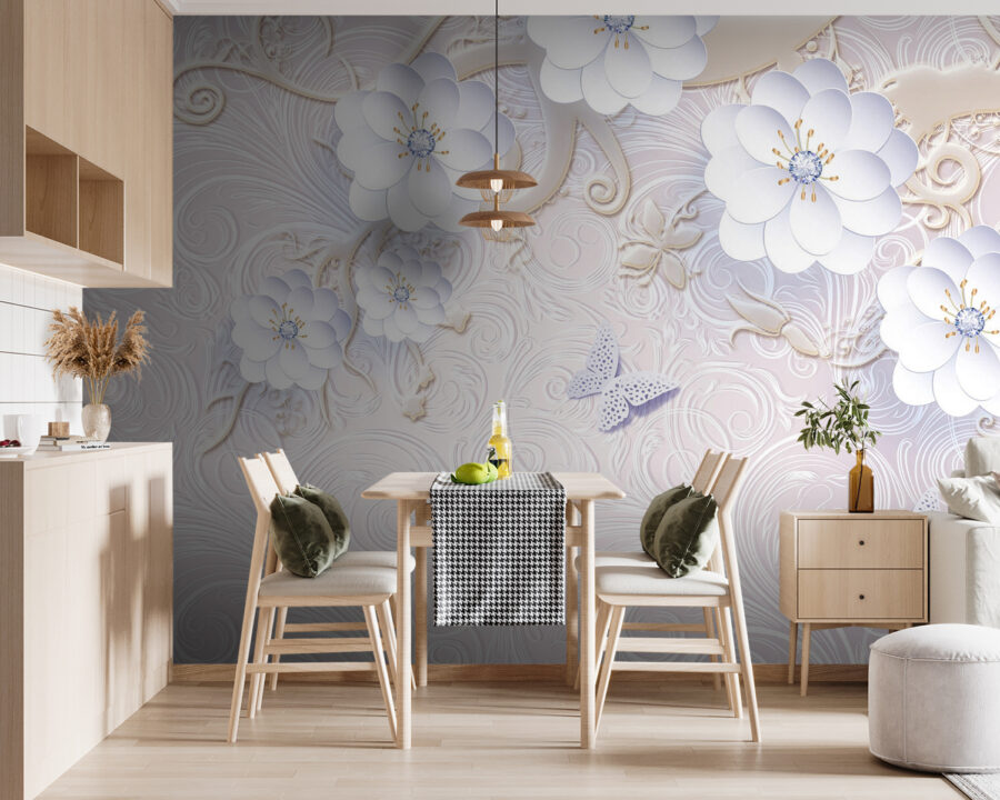Varázsolja otthonát nyugodt menedékké ezzel a gyönyörű faliképpel, amelyen finom fehér virágok és lepkék repkednek. Olyan, mint egy friss levegővétel – tökéletes egy hangulatos sarok felvidításához vagy egy álomszerű háttér megteremtéséhez a hálószobában. Képzelje el, ahogy reggelente kortyolgatja a kávéját, élvezi a nyugtató hangulatot, vagy akár egy virágzó kertről álmodozik. A lágy színek és a bonyolult minták olyan érzést keltenek, mintha egy titkos virágoskertben sétálna. Ráadásul ki ne szeretné, ha pillangók táncolnának a falain? Ez a tapéta egy kis szeszélyességet ad a helyiségnek, miközben megőrzi az eleganciáját, így tökéletes azok számára, akik egy kis természetet szeretnének behozni az otthonukba.